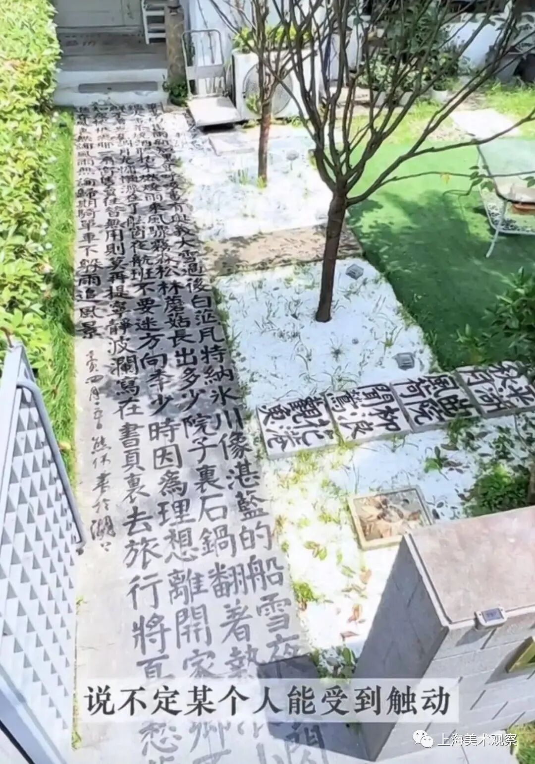近日,浙江杭州一位“90后”书法老师熊伟将自己的家和书法艺术融合起来,他在家中院子里的石板上写满了字,引来了周围邻居的围观。
