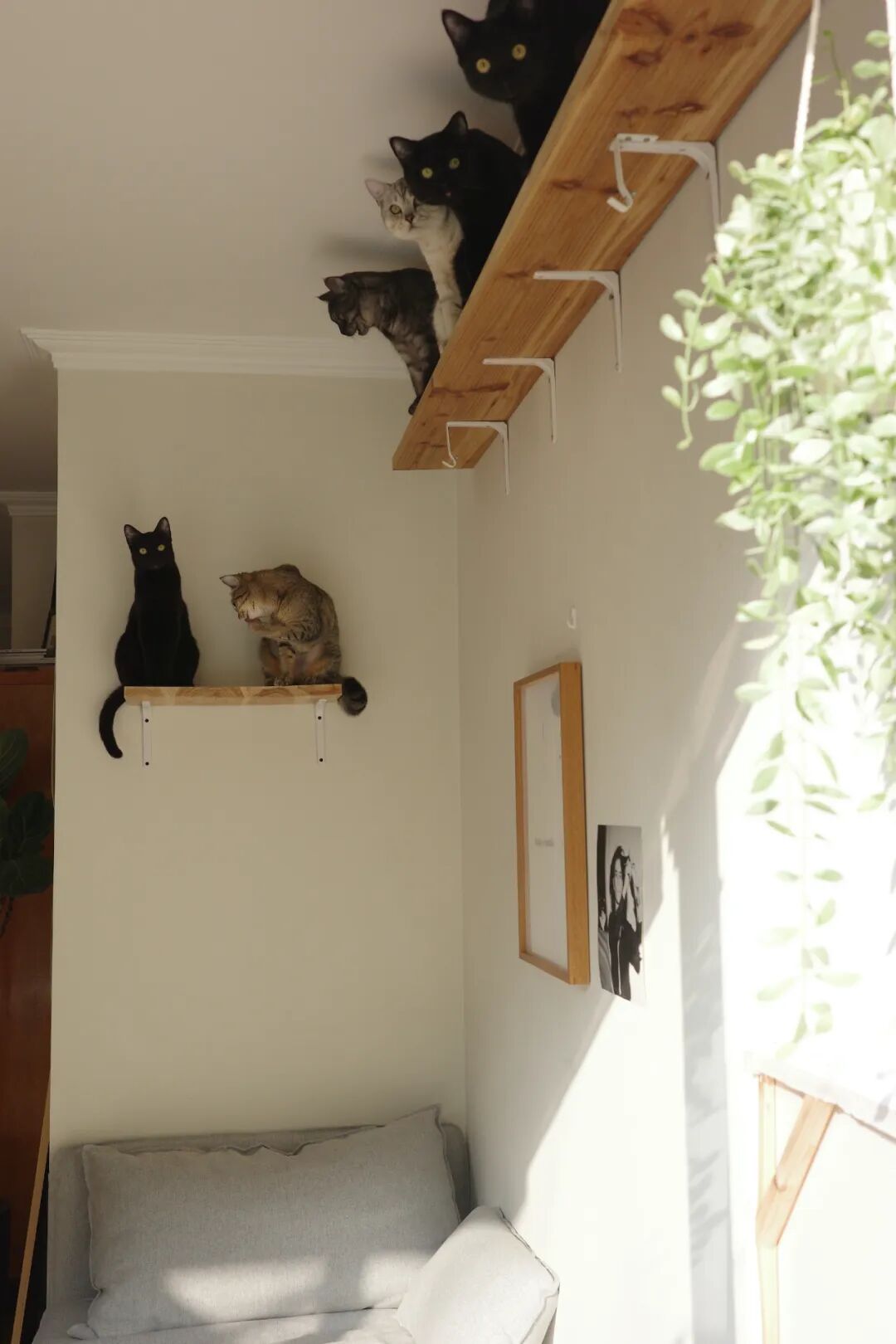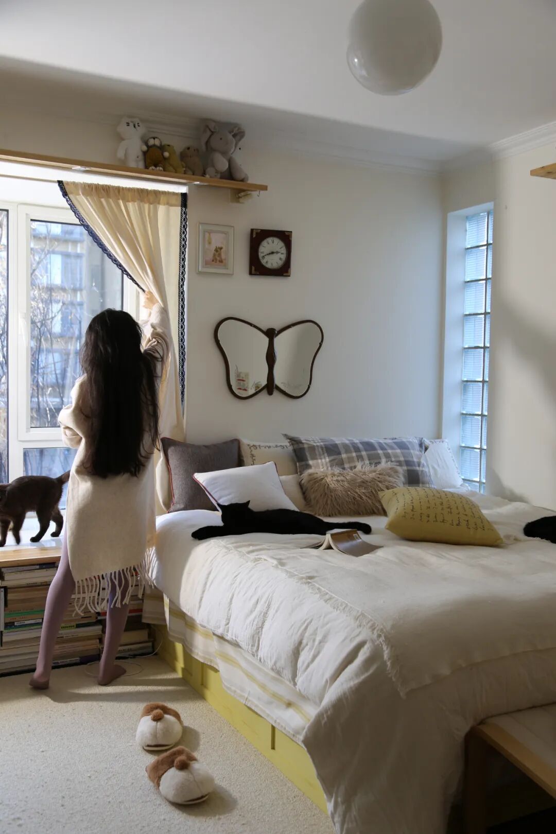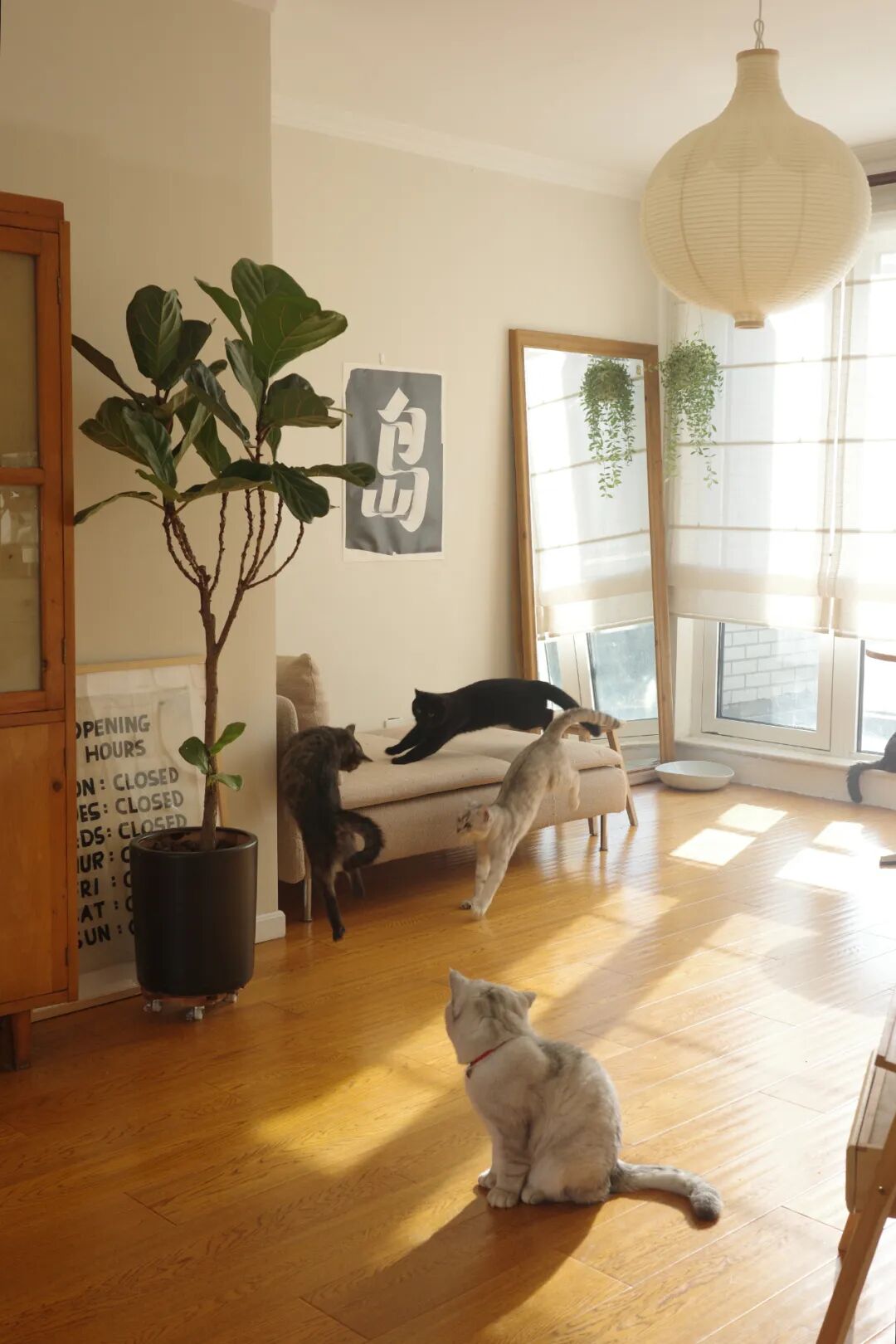 光影温柔,猫在屋子里伸懒腰,全是居家生活的惬意,深入和她聊聊,才知道这是她和男朋友在北京租的房子,90㎡大小的三室洋房,养了九只猫咪(养猪大户