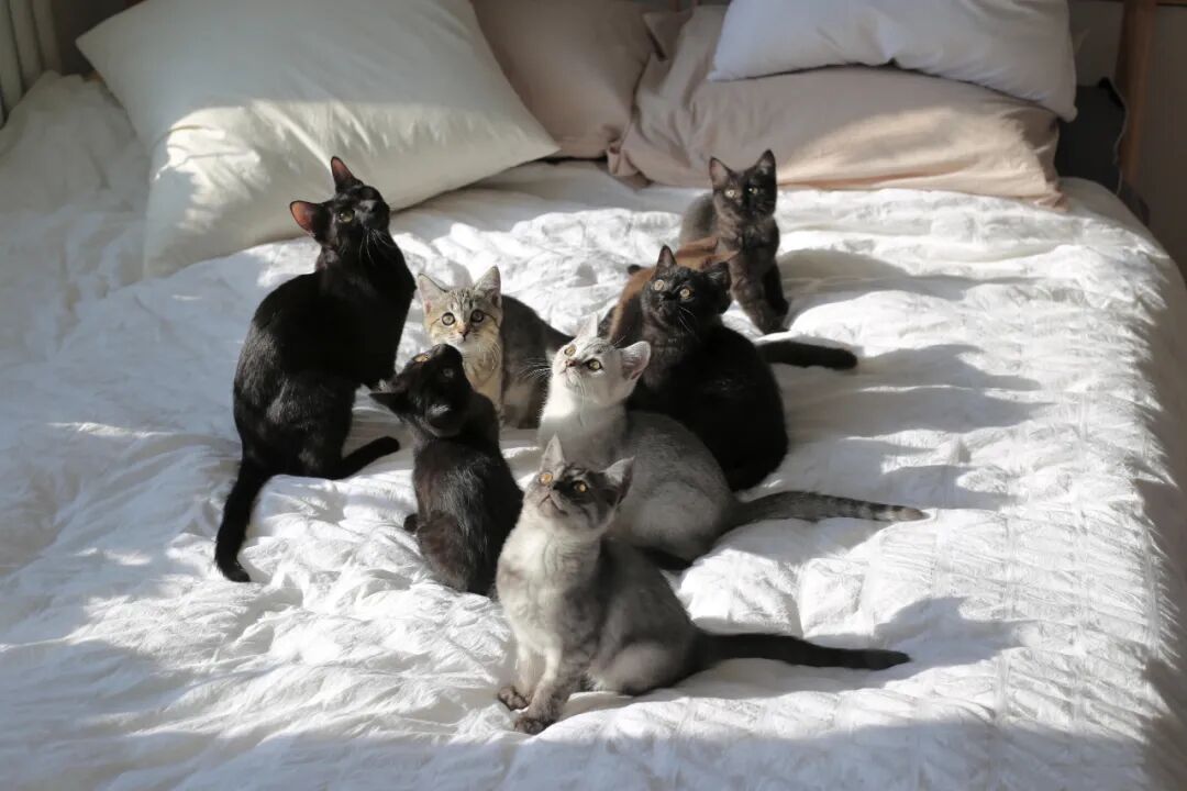 养猫不稀奇,但我家一共养了九只猫,每天早上起来都得铲热乎的屎。
