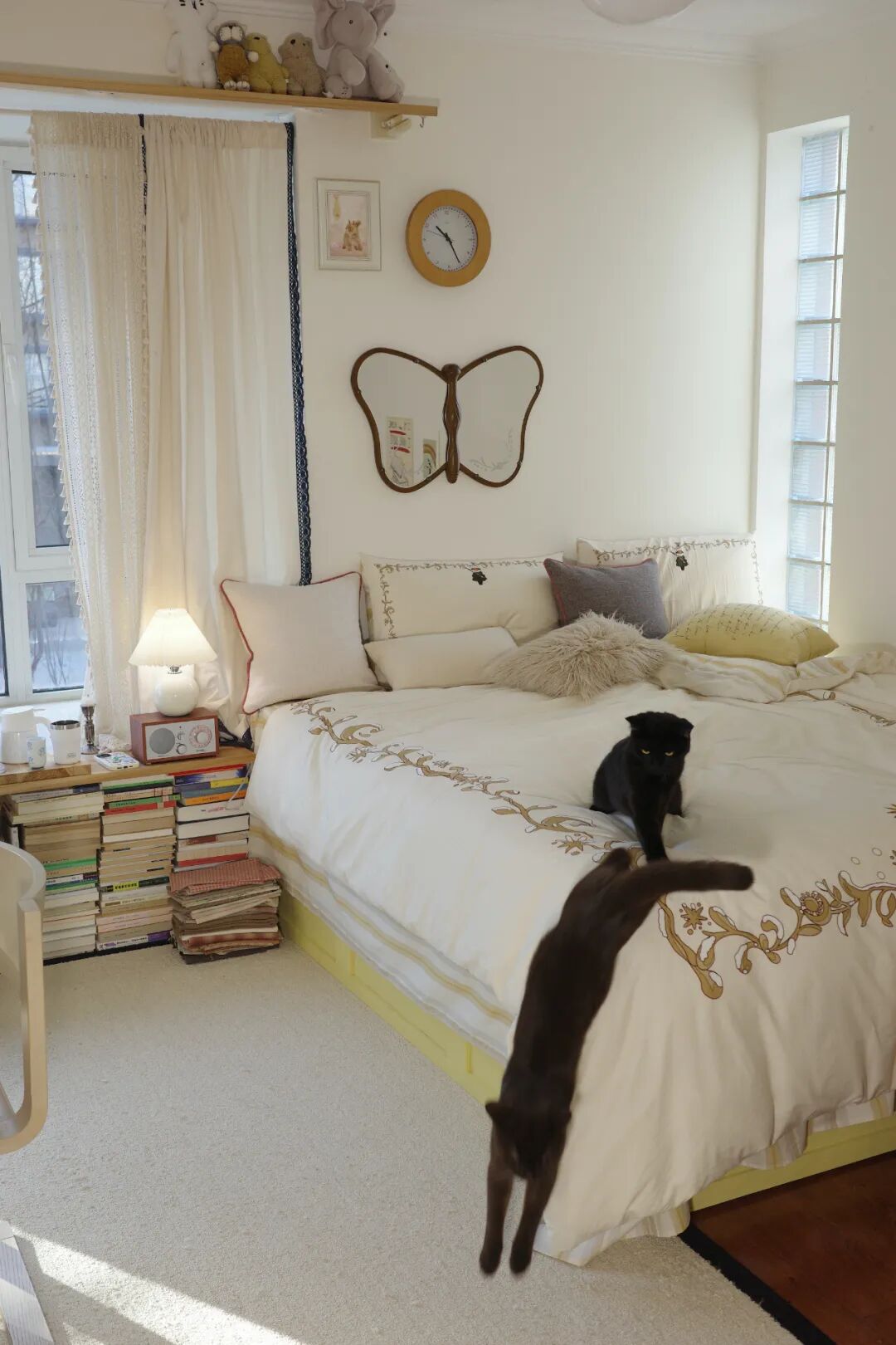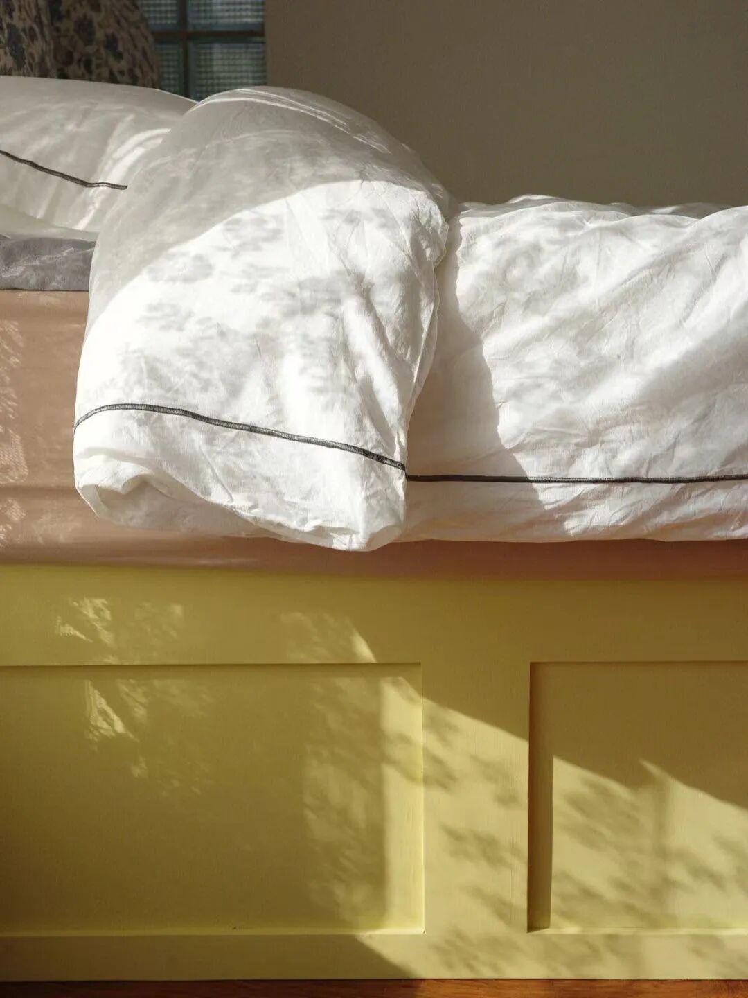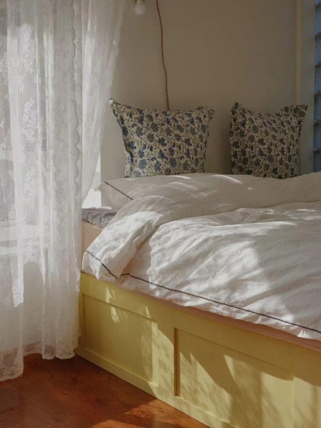 改造主卧时,我特别想要一张奶油黄色的床,当时找遍全网,只有儿童床有这种可爱的颜色。