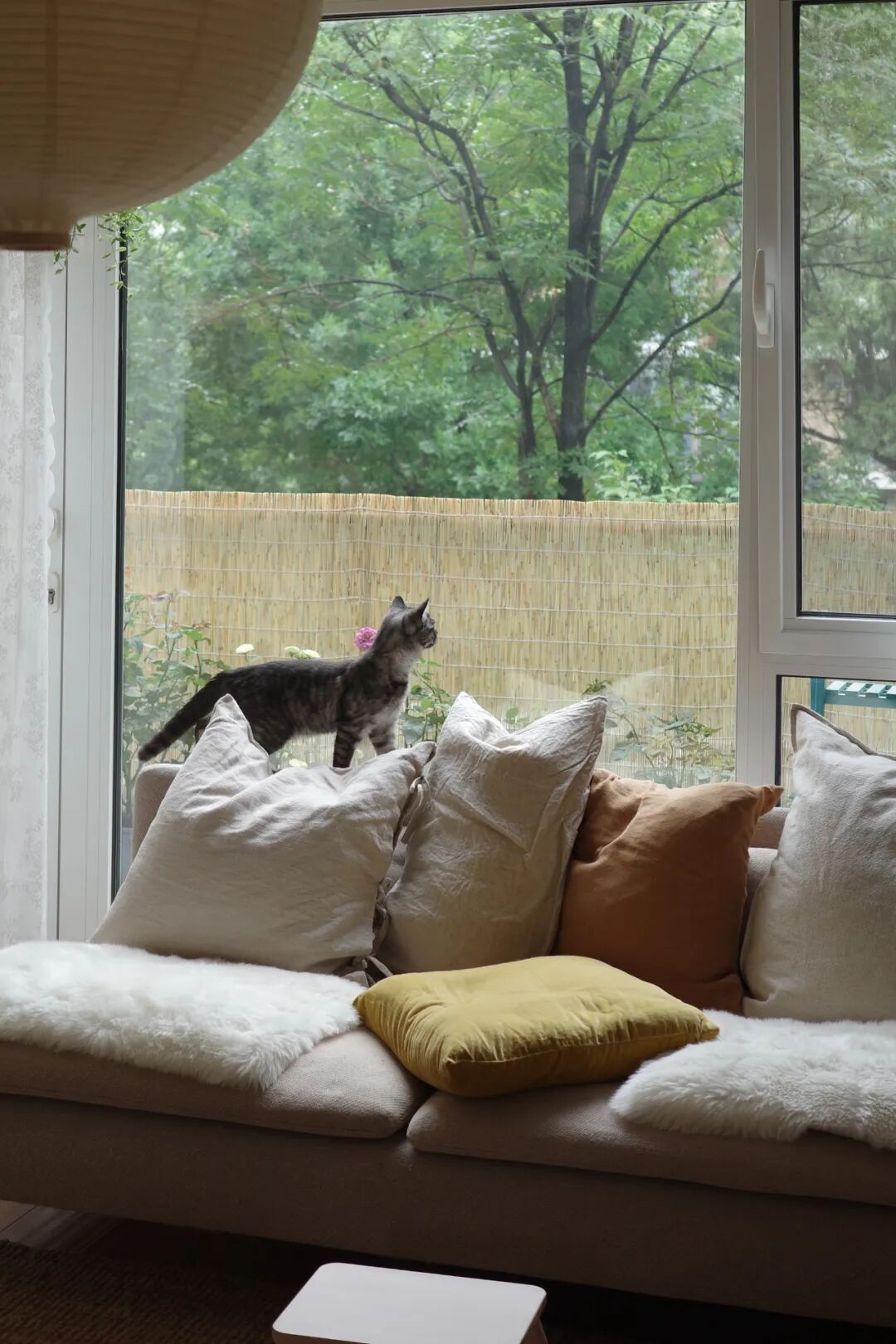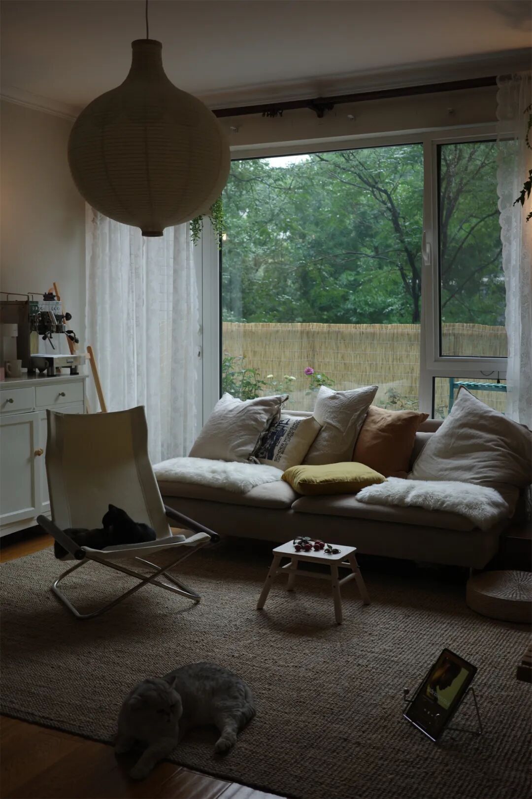 客厅有着一整面的落地大窗,窗外是“会呼吸的小森林”,当初就是看了这风景,走不动道了,眼里容不下其他的房子。