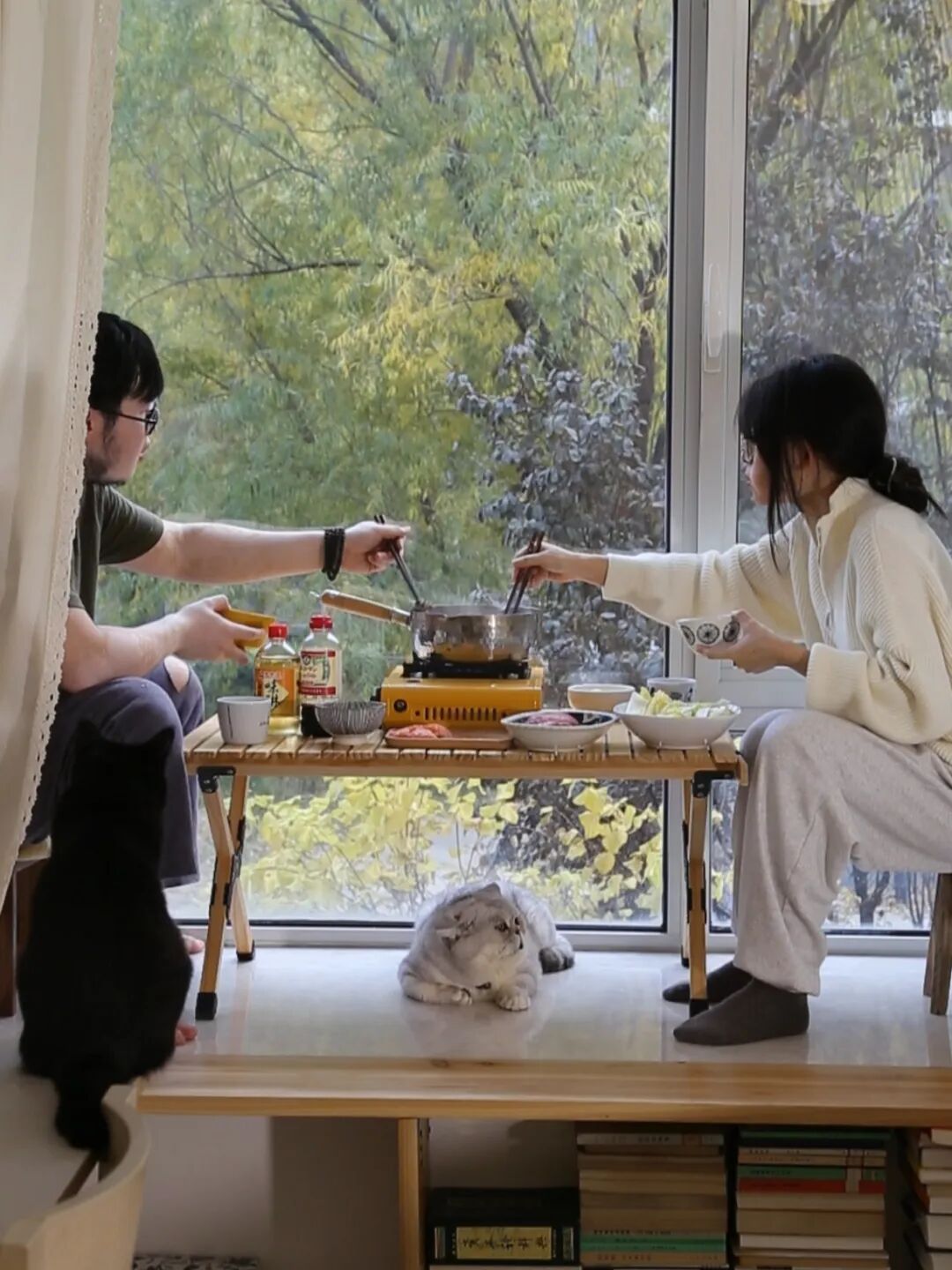 立冬那天,我和男朋友在主卧飘窗上吃了一顿热腾腾的寿喜烧,猫围在身边,突然就觉得好幸福,吃的也好,屋子也舒服,一时间竟有些恍惚。
