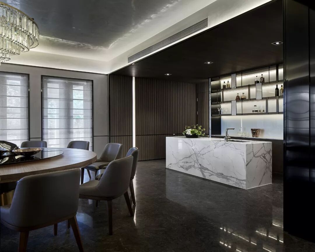 作品集2023-06-20 914㎡复式样板间,耐人寻味超乎你对家的想象! “美感在乎赏鉴,故美学之判断,所以别美丑。是吾人意识发展之各方面也。” 蔡元培老先生在《美学观念》一文中已提及美育的重要性,审美与修养,审美与学识,都有着不可分割的关系,而审美能力对于当代社会学习、工作、社交和生活各方面更是多有助益。 △灵感素材 于生活而言,起居空间占据了其大半时间。沉浸在此,当代人已不单纯满足平和与舒适,“家”亦成为了自我审美表达的重要载体。人、空间与艺术三者相互交融,彼此牵引,创造出理想生活的样貌。 将艺术与人文情怀包融于空间中,从不同维度展现了屋主的生活格调,也为当代大坪数居家空间树立了模板。 落落大方的门厅以极简的金属质感为主调,“少则得,多则惑”的东方辩证哲思为内在气韵,使人进门便感受到优雅而大气的空间气场,设计感极强的吊灯赋予了门厅别样的几何线条,方圆之间,自由天地。 门厅正对着的是空间开阔、窗明几净的会客厅。沉稳的皮质沙发搭配质地清晰的大理石背景墙,地毯柔和的纹路综合了空间的刚硬,与淡绿色透明吊灯一起,为空间增添了几分活力。阳光透过柔纱窗帘轻拂在会客厅内,宾客与屋主得以细语交谈,宾主尽欢。 △灵感素材 门厅的另一侧是办公室。一扇哑光玻璃拉门保障了在家办公其间的私密性,简洁的桌面,舒服的桌椅,清新的绿植,为工作减少一丝烦恼,也为片刻宁静提供无压力的场域。 △Poltrona Frau 法拉利Cockpit座椅 紧邻会客厅的,是悠闲舒怡的起居室。水滴涟漪般的吊顶让空间产生灵动的气息,永恒与美好在此波荡而开。地毯和茶几的几何形搭配平衡了空间,也使之层次更为多样,别具一格。 通过一扇拉门,进入餐厅。塞浦路斯灰大理石地面沉稳而时尚,一侧的调酒吧台彰显了屋主的格调,圆形餐桌符合中国人饮食习惯,吊顶与吊灯更是在用餐其间为圆满融洽的氛围述刻了形状。 △灵感素材 沿着楼梯上二层,这里是相对私密的卧室空间。 穿过楼梯间,主卧在楼层的一侧,色调柔和,质地讲究,不过于追求时尚,但隐藏的线条和肌理使人安逸。床头浅灰绿背景墙在空间中十分亮眼,与深色地毯产生了空间过渡,窗边精致的深色土耳其蓝单人皮质沙发,为主卧画龙点睛。正对床榻的抽象画,诠释着屋主不凡的品位。 △灵感素材 客房延续了主卧的静怡与品质,配合适宜,调性温和,即保证了整体设计的统一,又在不同的细节上进行权衡与改变,使小住的客人能感受屋主的贴心。 走下楼梯,在地下层空间内,依旧以塞浦路斯灰大理石为地面主基调。在多功能活动区,一侧是亮白的酒吧台,另一侧则是木质长桌,可以满足家庭及好友相聚时的各种需求。 半开放式的红酒雪茄区采用大片落地镜面,延展了空间视觉。低调的黑色皮质沙发给人神秘而华贵的心理感受,精致的墙面展示柜为屋主留以足够的空间陈列酒品、雪茄及各类周边。 △灵感素材 在地下层还设立了影音兼KTV室,灰色调墙面与墨绿色家具,使空间安宁,金色线条的加入,又增添了流动性与金属感,满足了家庭娱乐和好友聚会的多样性选择。 西子青山湖这套居所,为高品质审美作出无瑕的诠释,展示出空间自在的气度,以及居所拥有的内在精神,也呈现了对美好生活的愿景。 本文来自微信公众号“亚太室内设计”(ID:ytsnsj)。大作社经授权转载,该文观点仅代表作者本人,大作社平台仅提供信息存储空间服务。 TAGS: 室内设计蔡元培 相关文章Kleoniki Andr…这是大王Day.281获奖作品《2020最佳图书…精选头像|搞怪来袭!安东尼奥·布埃诺 作品配色清新梦幻的场景插画,充…美国Jennifer Mc…【小鹏设计】设计小改/动力…【首发】地点空间丨打破空间…谢商家不坑之恩!只骗有钱人…