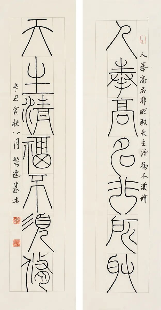 边款:墨研清露月,琴响碧天秋。辛丑年宜斋制
