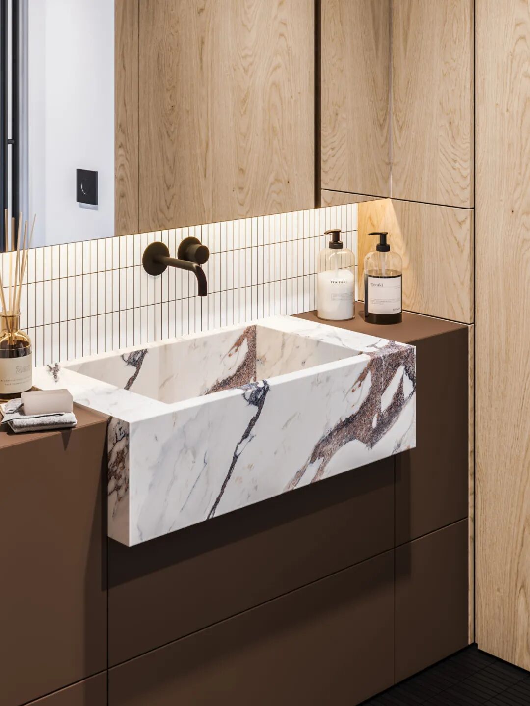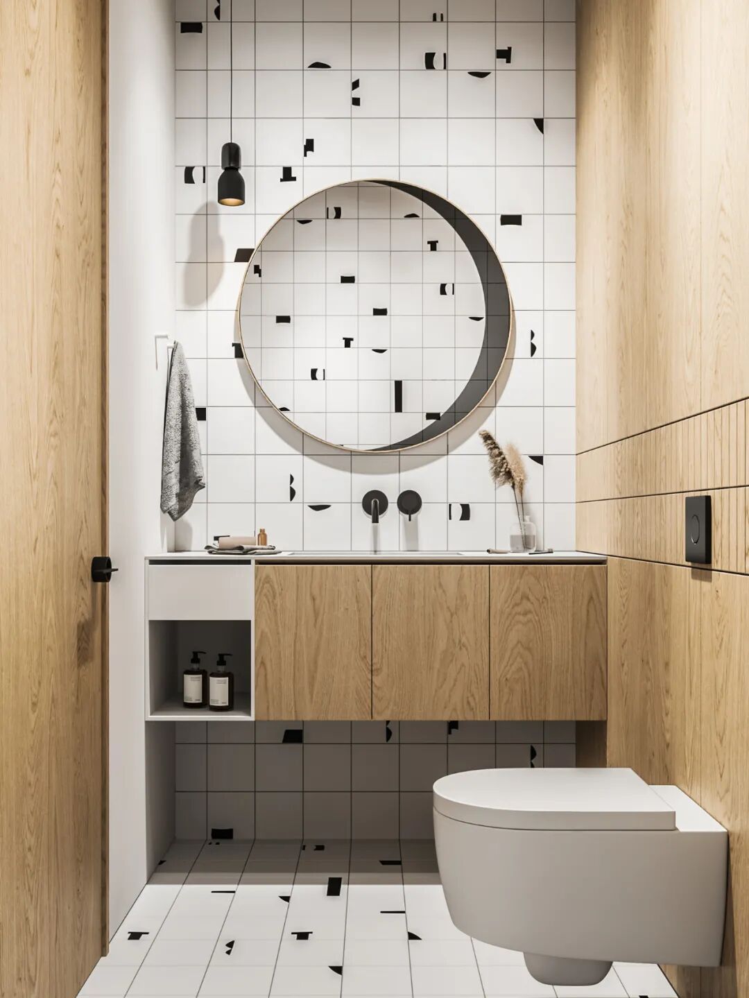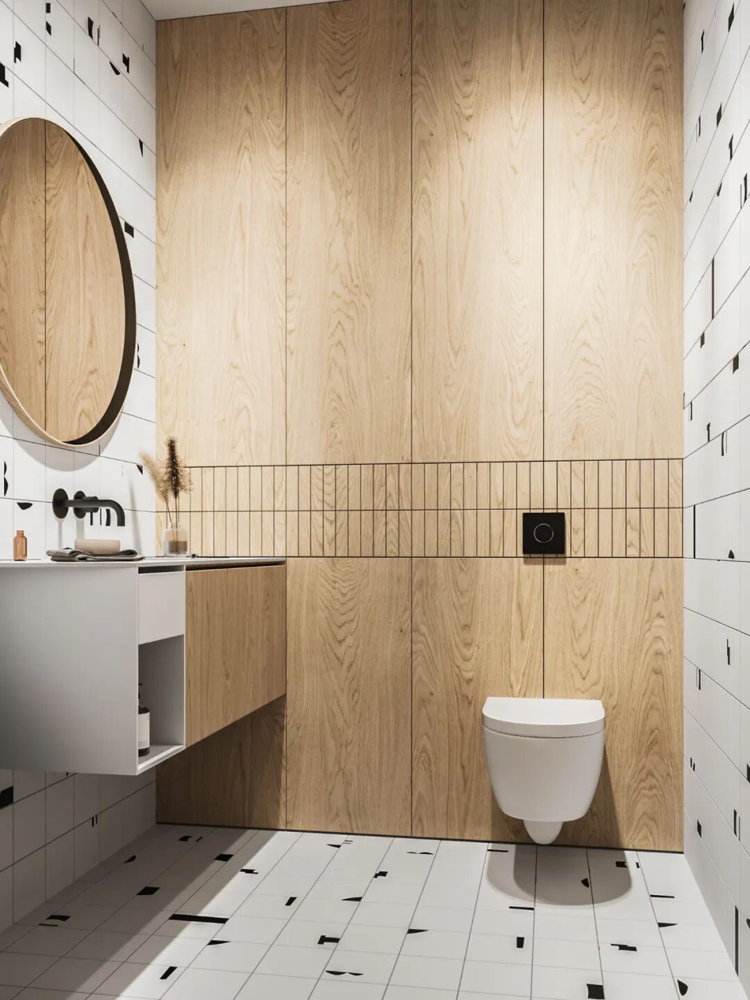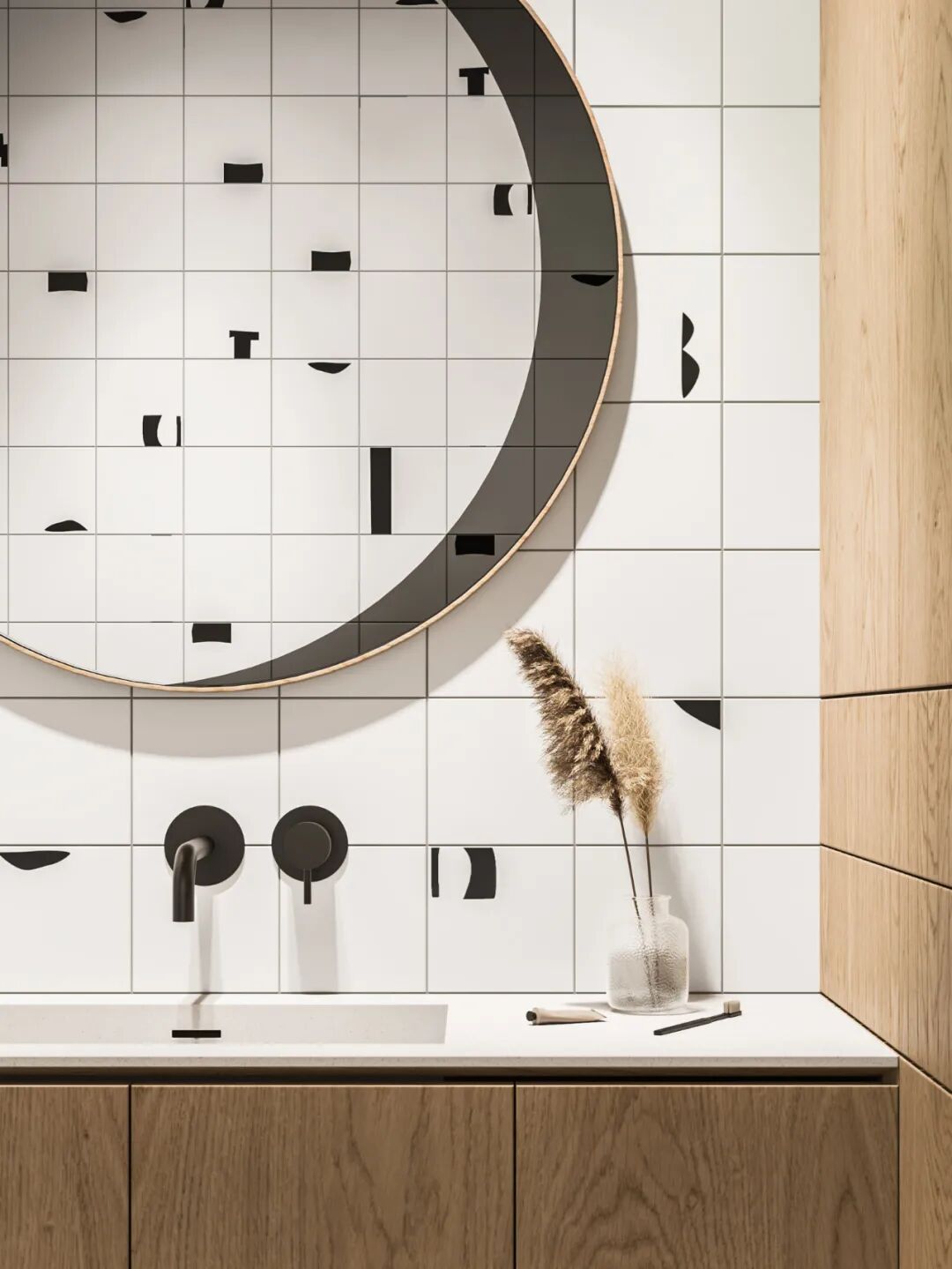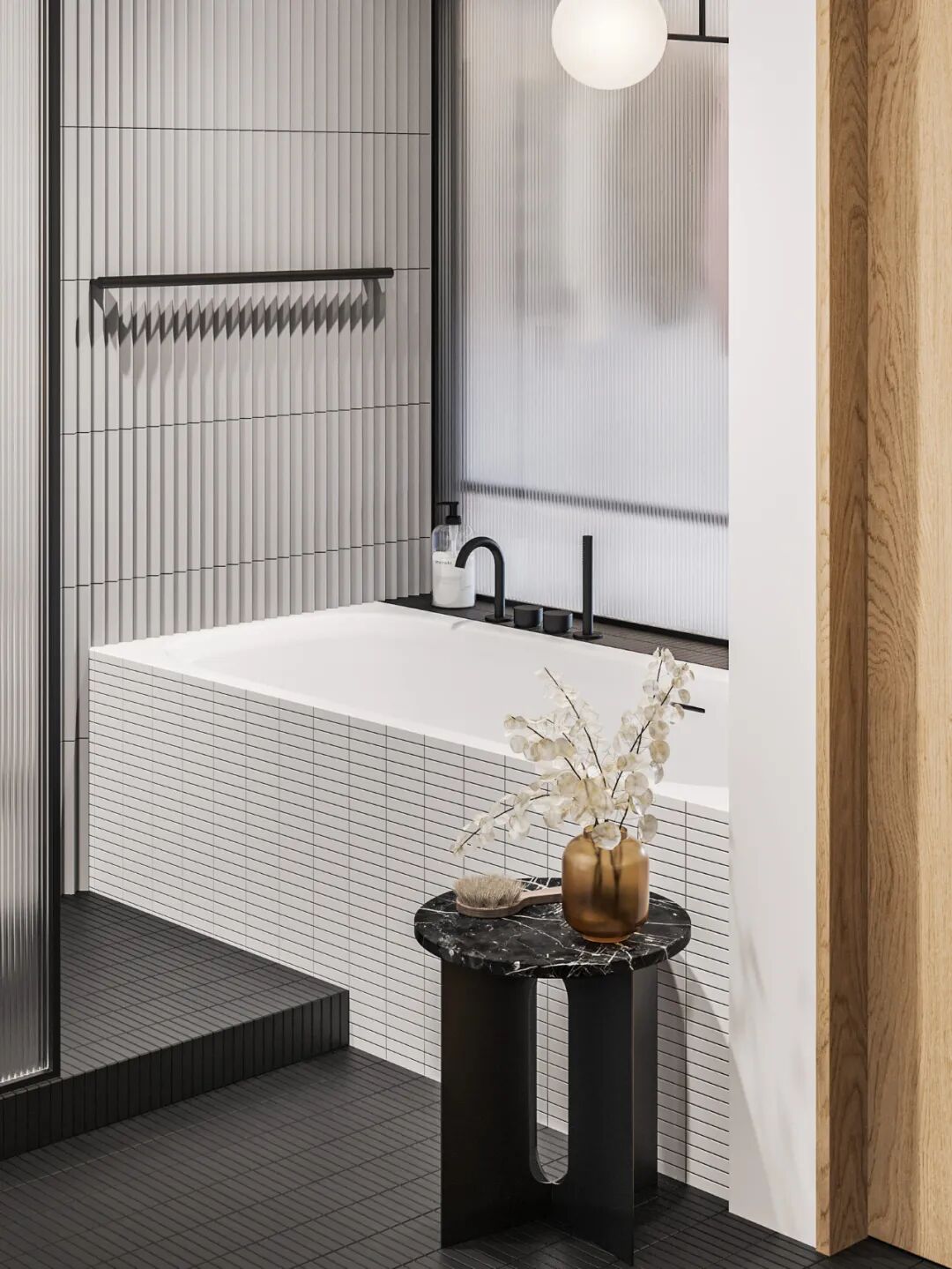 这个公寓位于莫斯科 面积为 92.4㎡是 BUREAU SLOVO 的新作在整个家中设计师将木材作为主材料用于家具和装饰上还加入圆形元素来优化空间线条△BUREAU SLOVO玄关利用深色的瓷砖铺贴地面划分出区域时尚又现代的异形镜子搭配灰色沙发凳墙面选用白色+木饰面设计不过分雕琢的自然素材让层次感与格调兼备客厅同样大量的使用木元素设计师还选择了一款与木色接近的沙发以起到色调统一的效果加上黑色的茶几、几何图案的地毯、绿植点缀给人带来简约素雅的温馨感定制的电视柜集收纳于一体靠窗位置的开放式黑色书架也可么作为展示柜使用 为了优化空间和提高空间利用率设计师在餐厨之间采用了一体设计黑色与木饰面的吊柜 大量的储物空间满足了收纳需求颜色上也形成鲜明对比