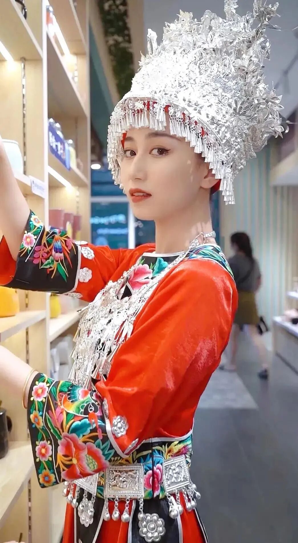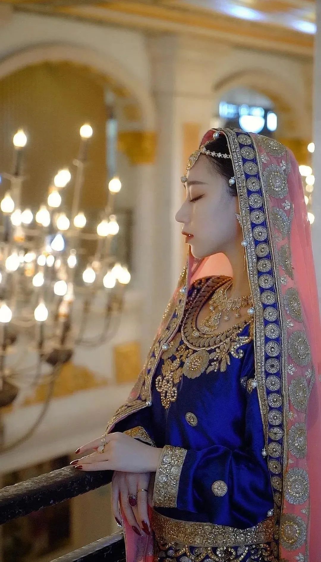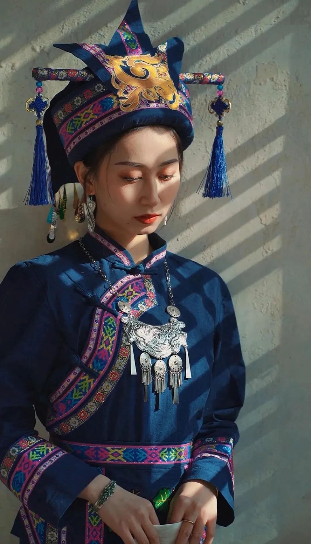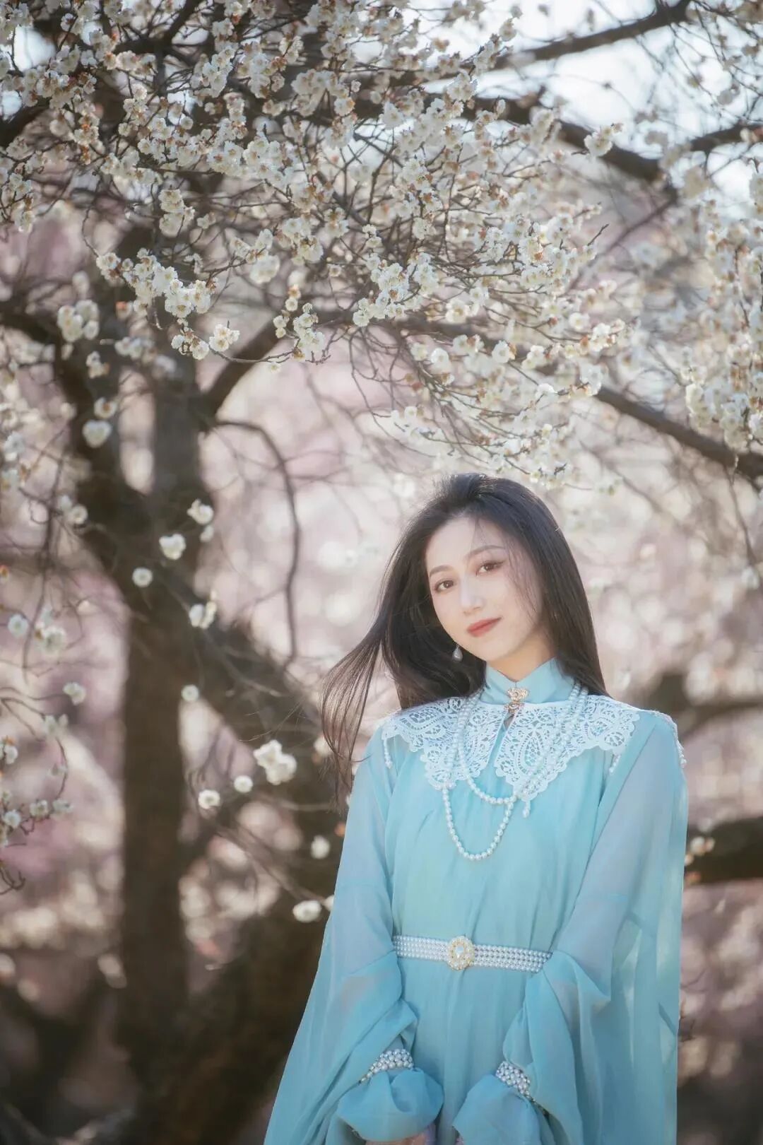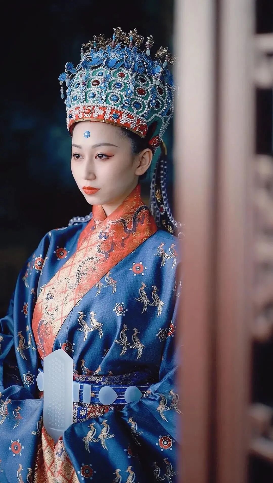 端庄的湖蓝汉服,少不了精致的凤冠。