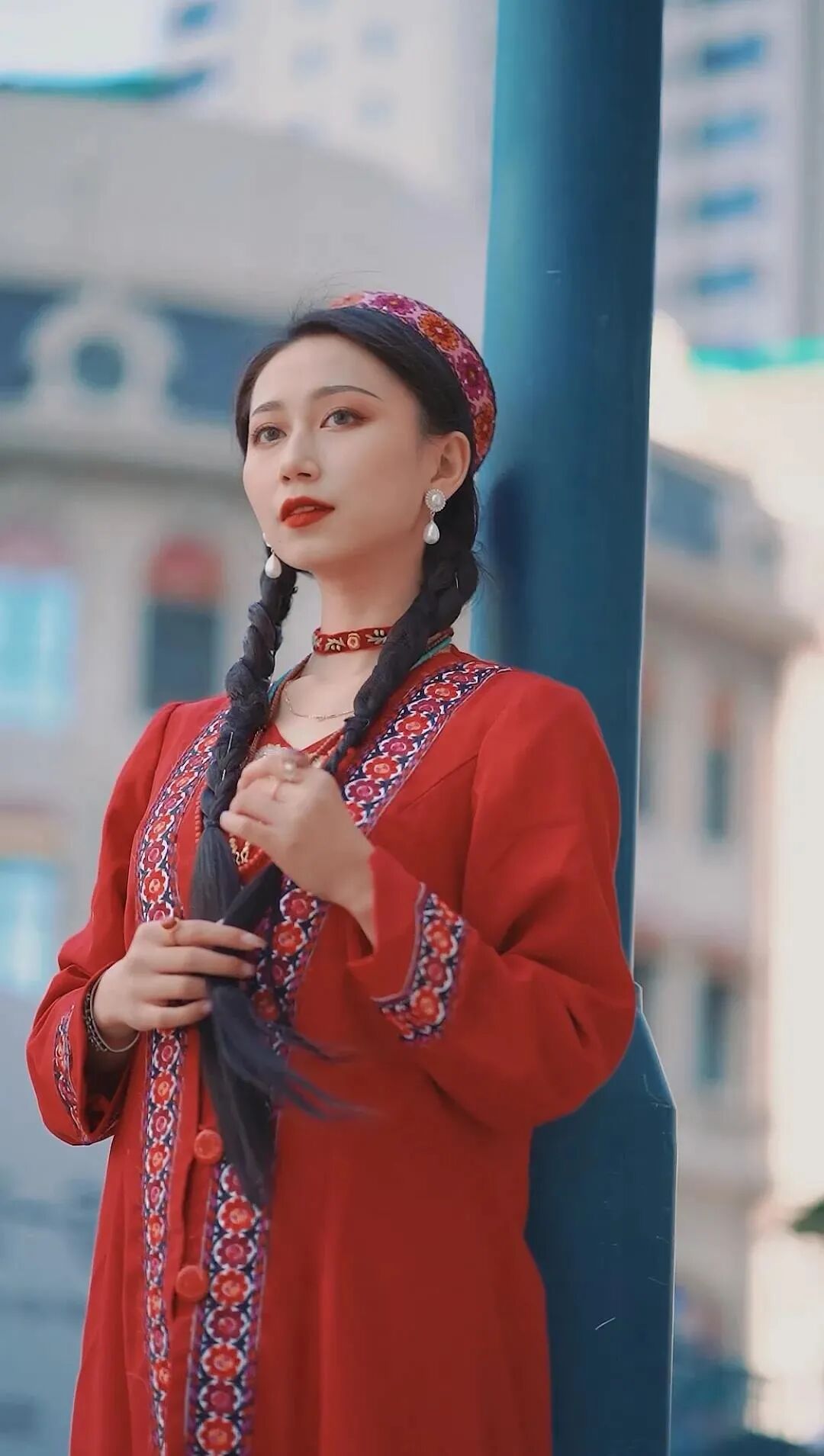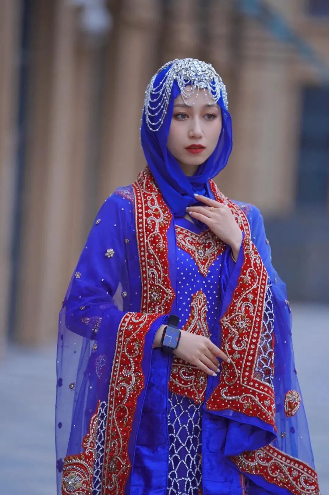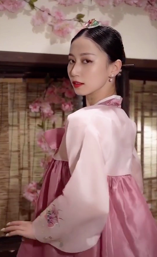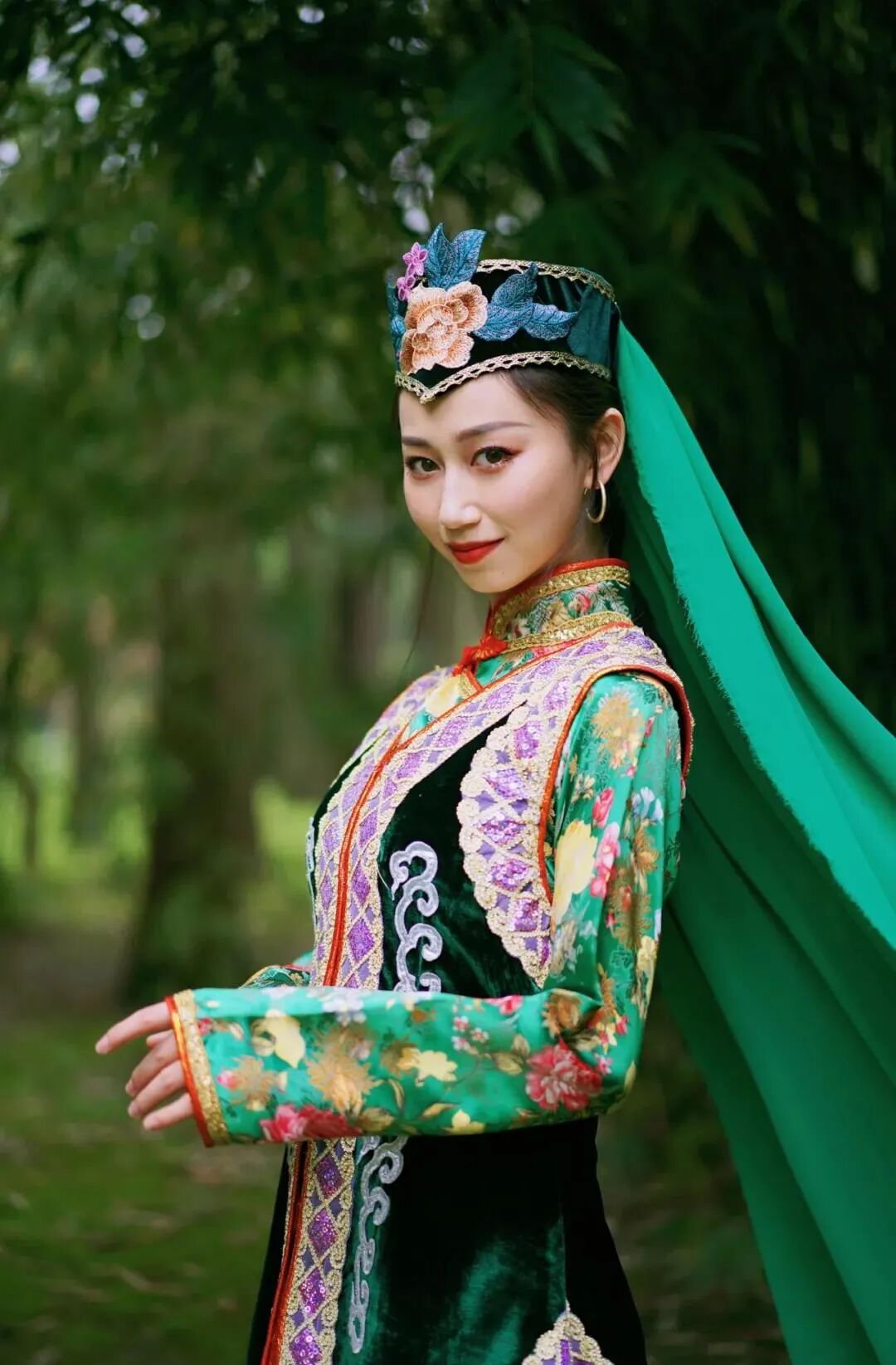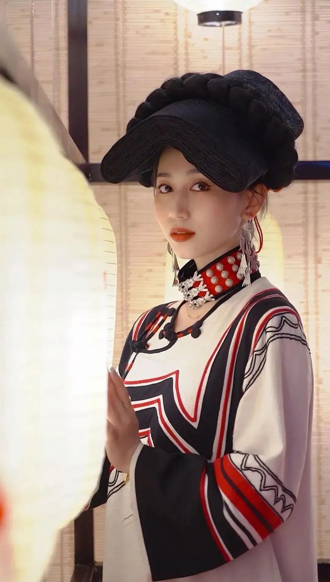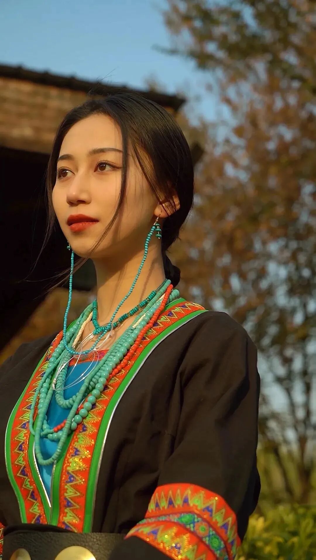 端庄的湖蓝汉服,少不了精致的凤冠。