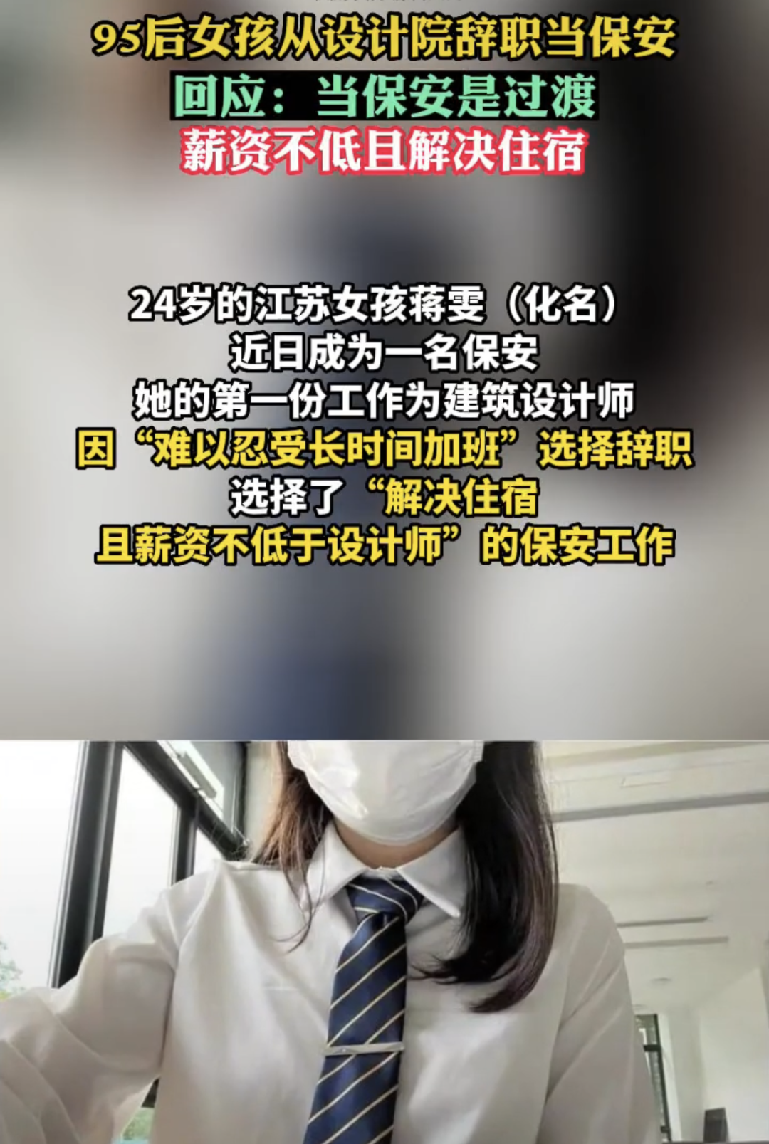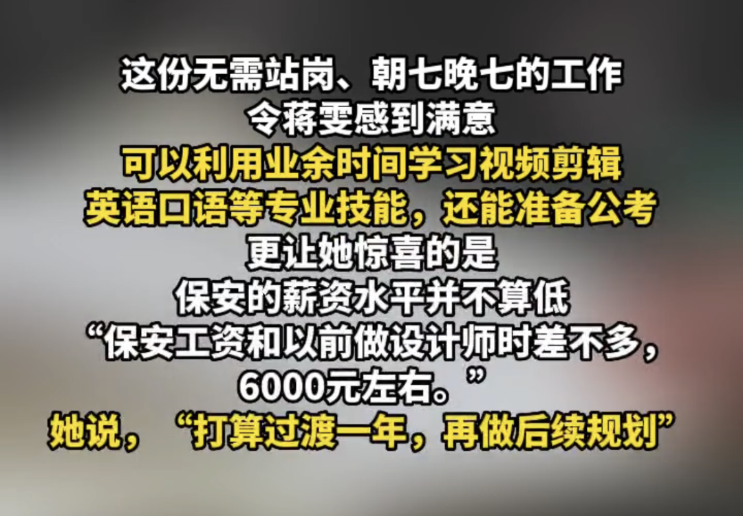 95后女设计师辞职当保安?!包吃包住,收入翻倍?!