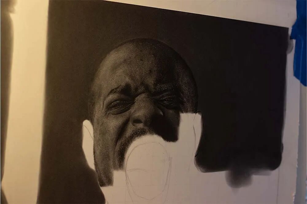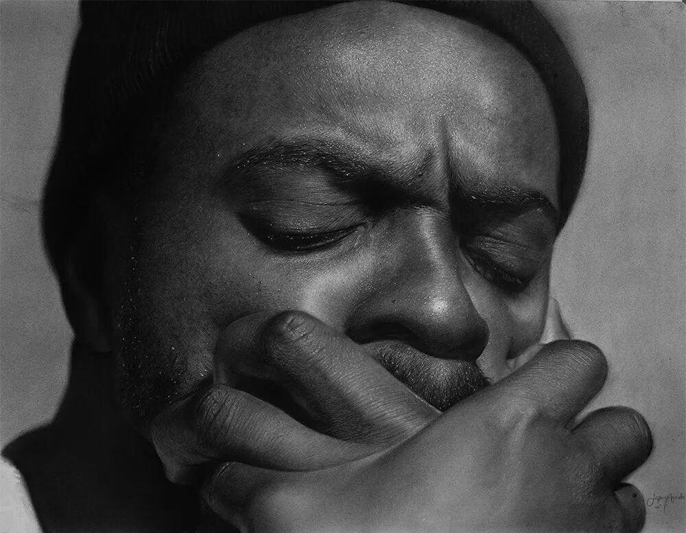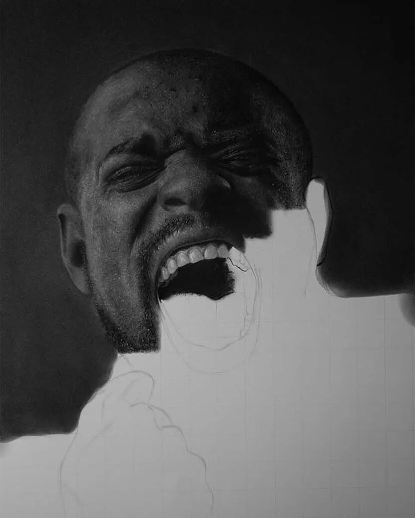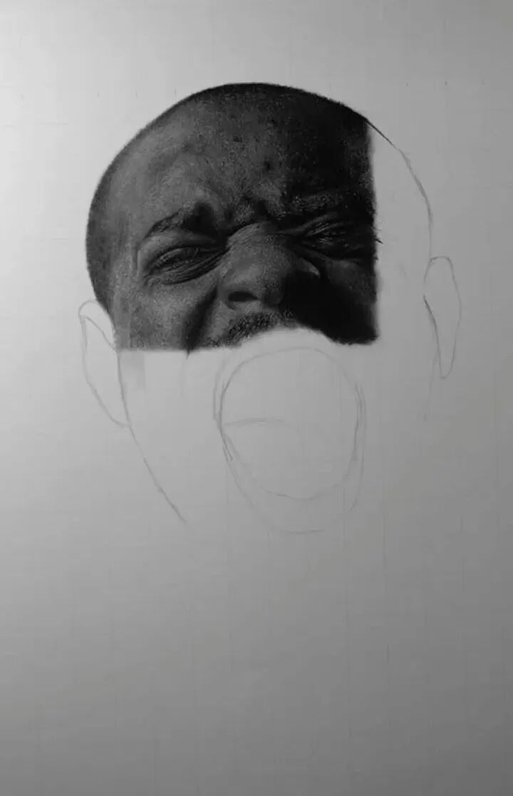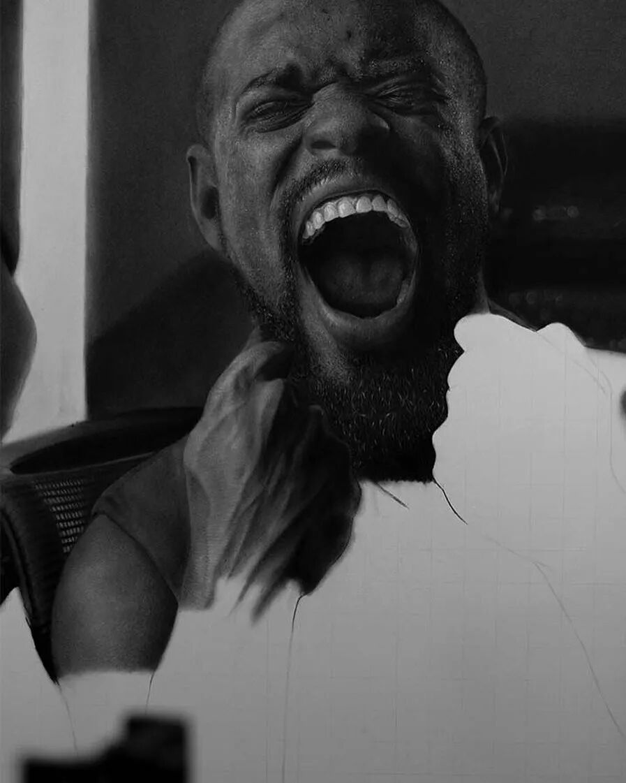 今天小绛想跟大家介绍一位超写实画家,出生于1995年的加纳小伙儿杰弗里·阿皮亚图,他擅长用石墨铅笔和木炭来描绘超写实人像,每完成一幅作品,需要花费100个小时的时间,一旦开始一个项目,这位艺术家基本上就进入了“闭关”状态,除了维持生存需求的饮食和睡眠之外,几乎一整天里的所有时间,他都用在了超写实人像的绘制上。
