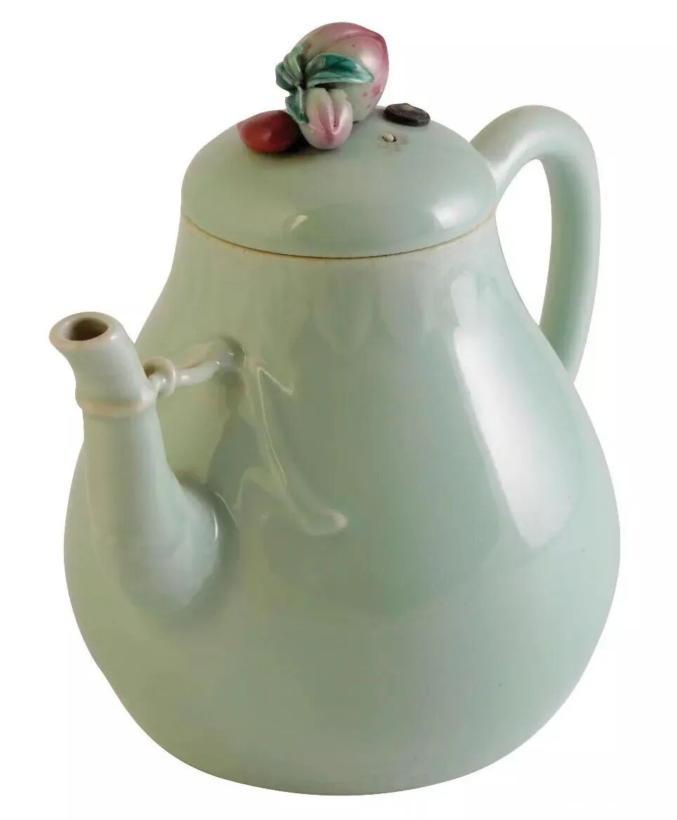 拍前估价1,000 - 2,000英镑的清乾隆粉青釉寿桃钮梨式执壶,经过数十轮激烈竞投,最终以800,000英镑(约合人民币720万元)成交,溢价800倍!