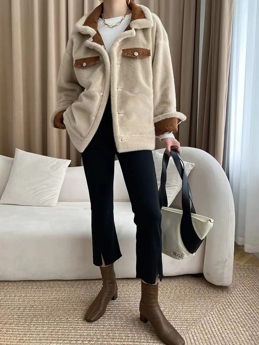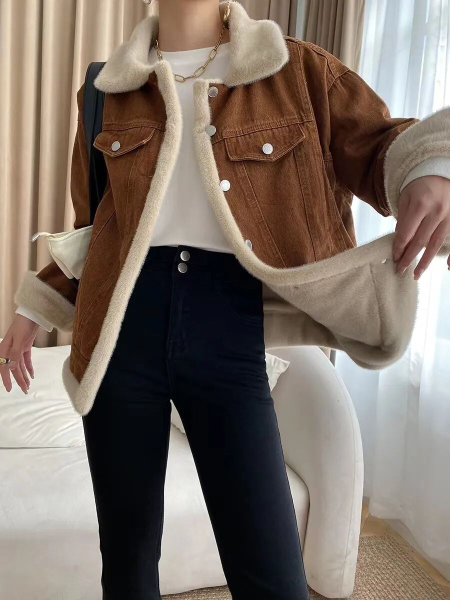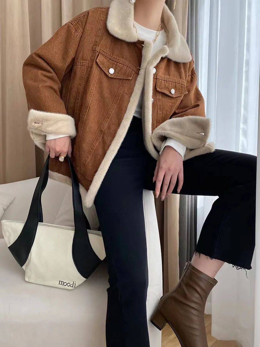 / 全加绒牛仔外套+内搭+紧身裤 /