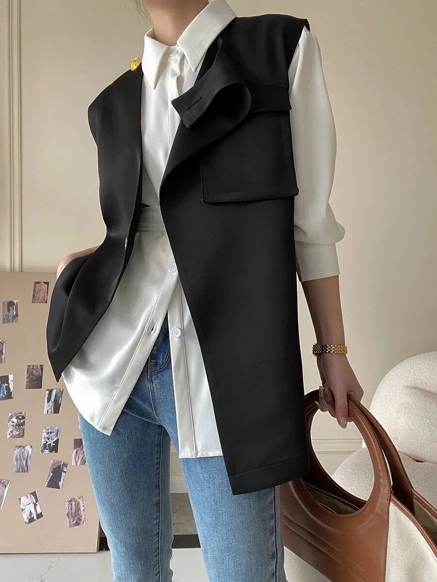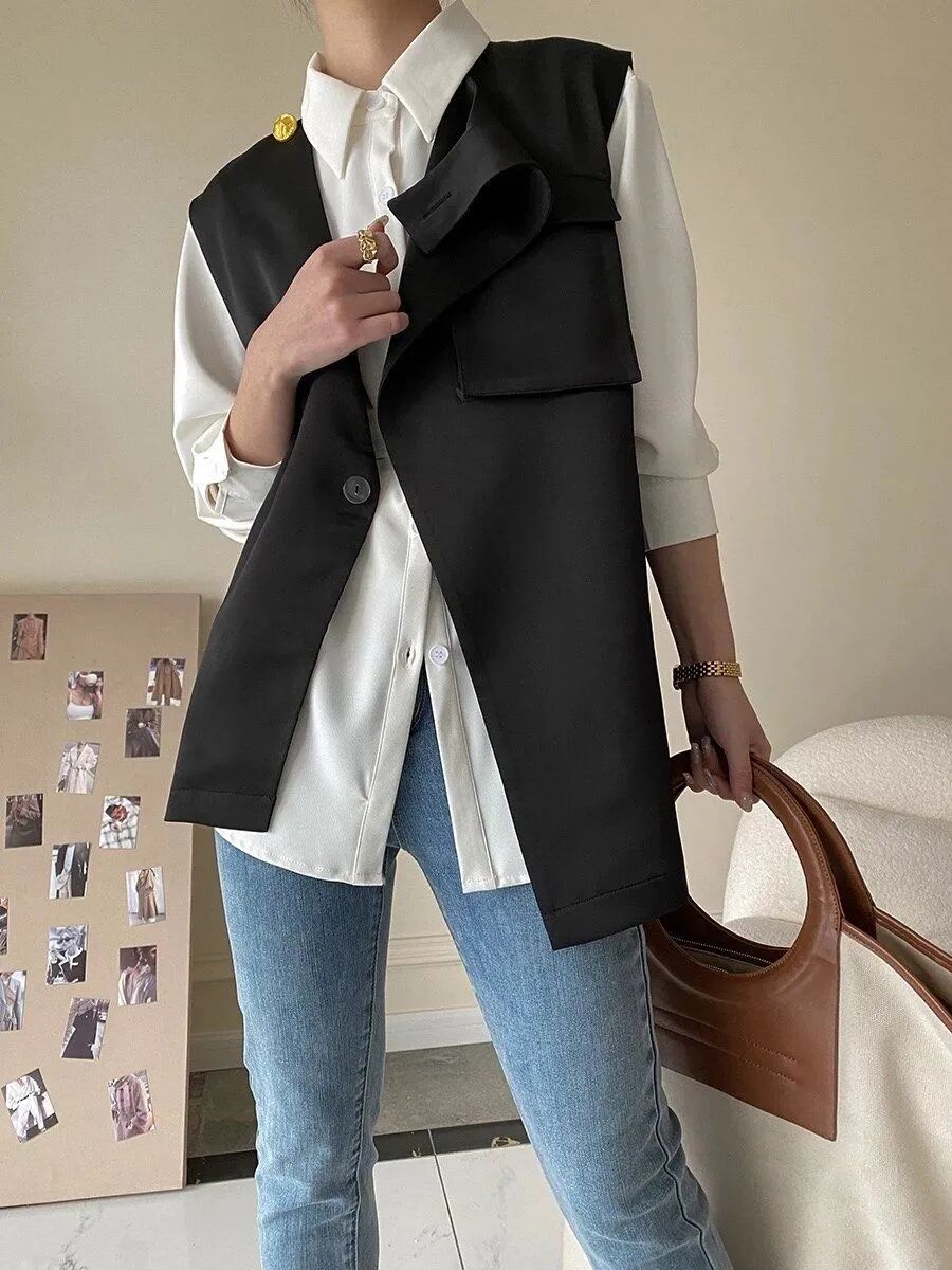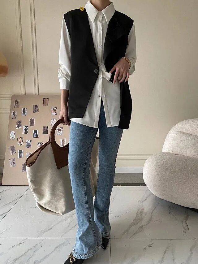 / 不对称马甲+白衬衫+牛仔裤 /