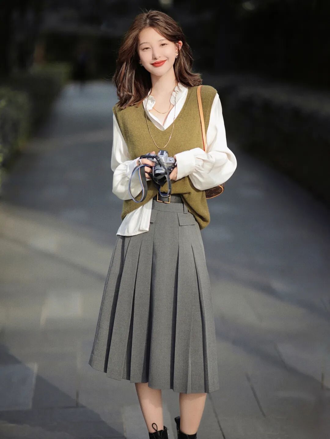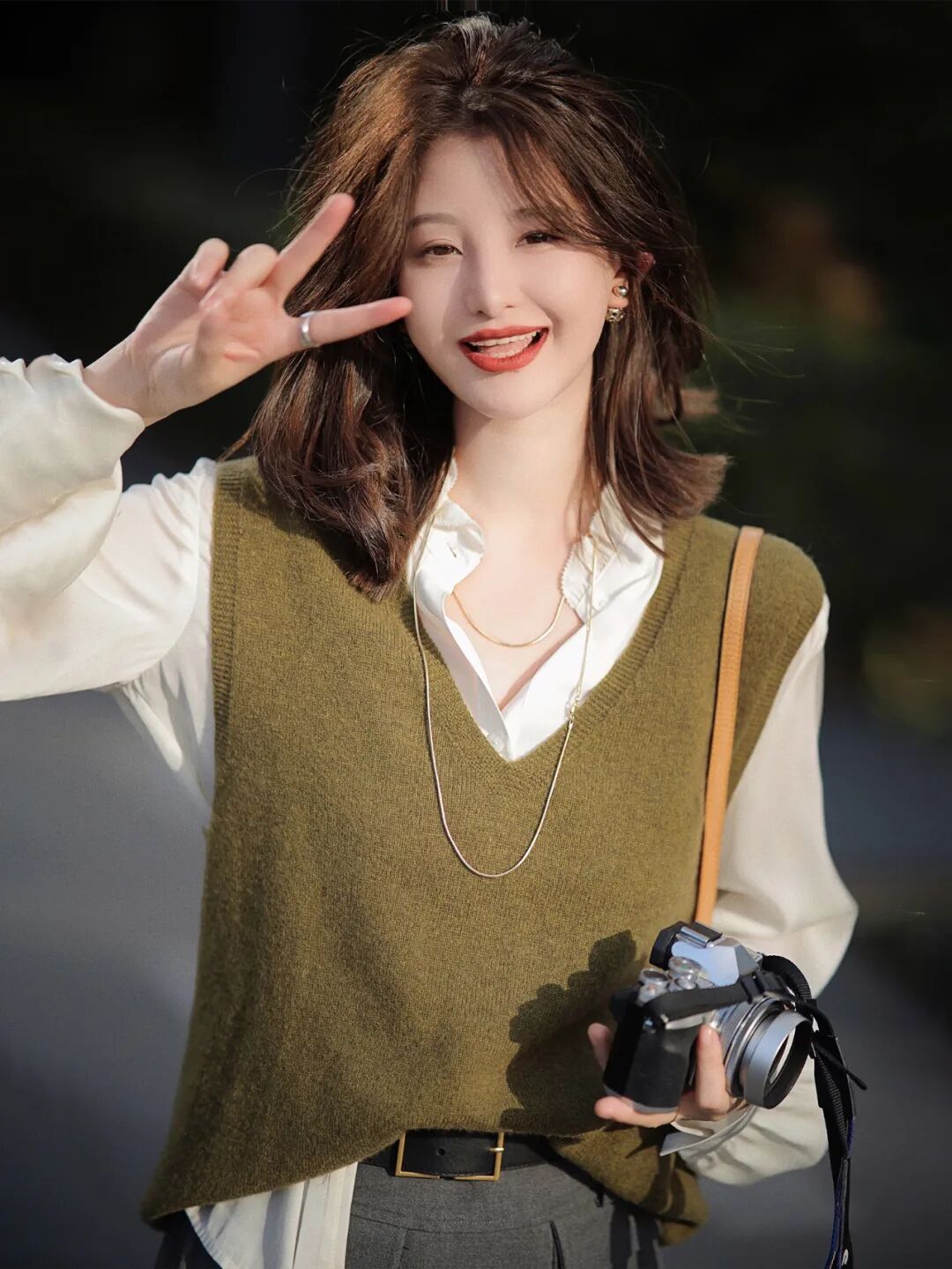 马甲+衬衫的叠穿公式真的超好用,但总想从这里头穿出点不一样的,这套搭法就深得我心。