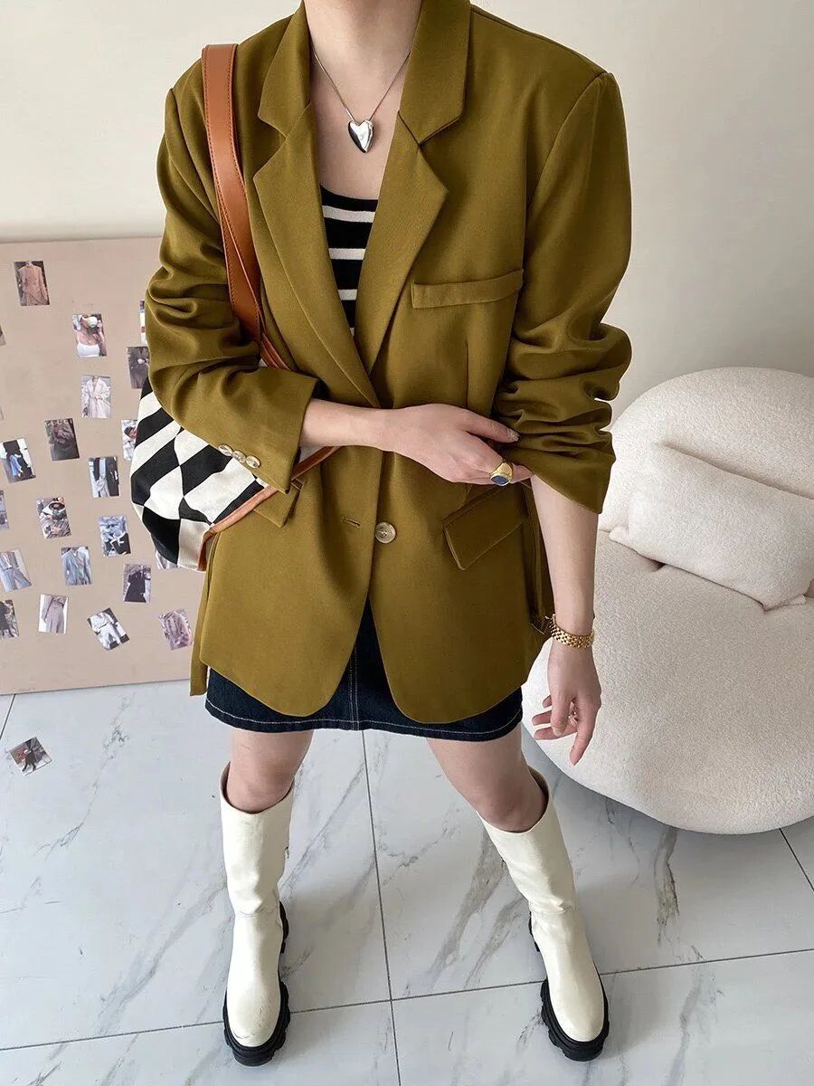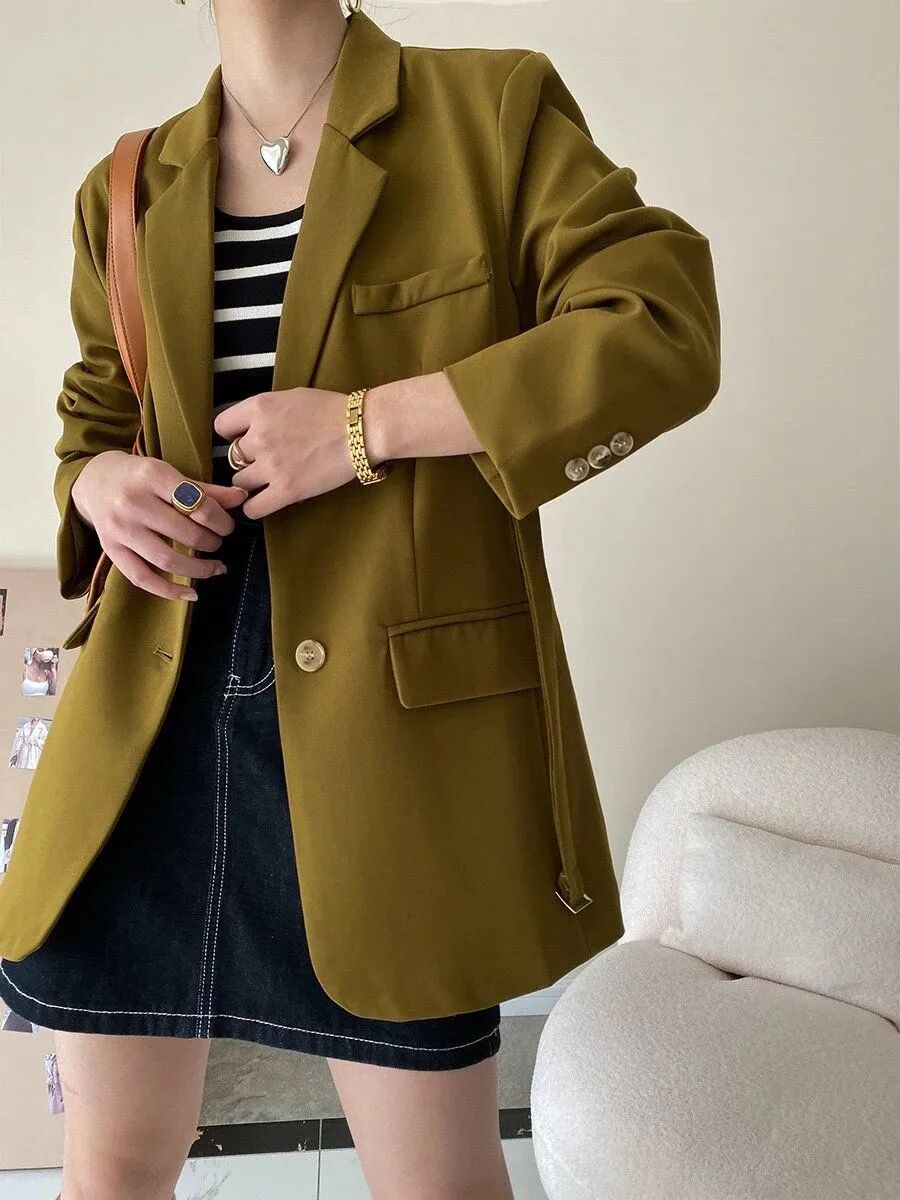 八字领是我觉得最好搭的一种领型,不会显得过分有冲击性;单排扣也足够简洁。