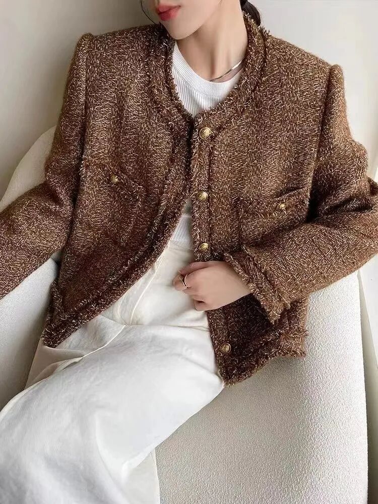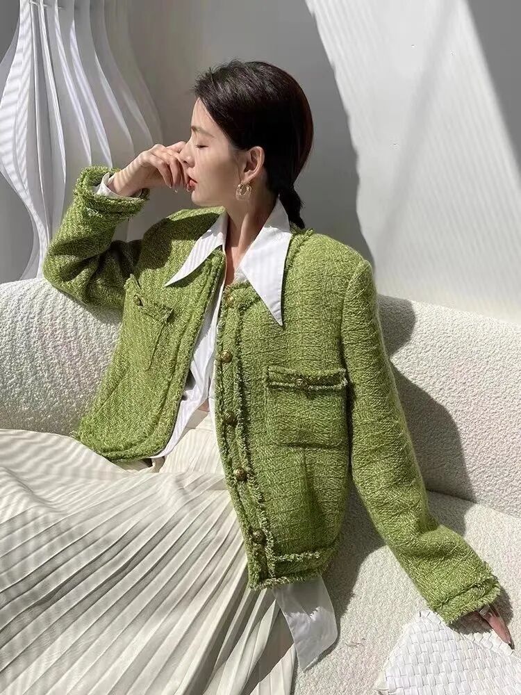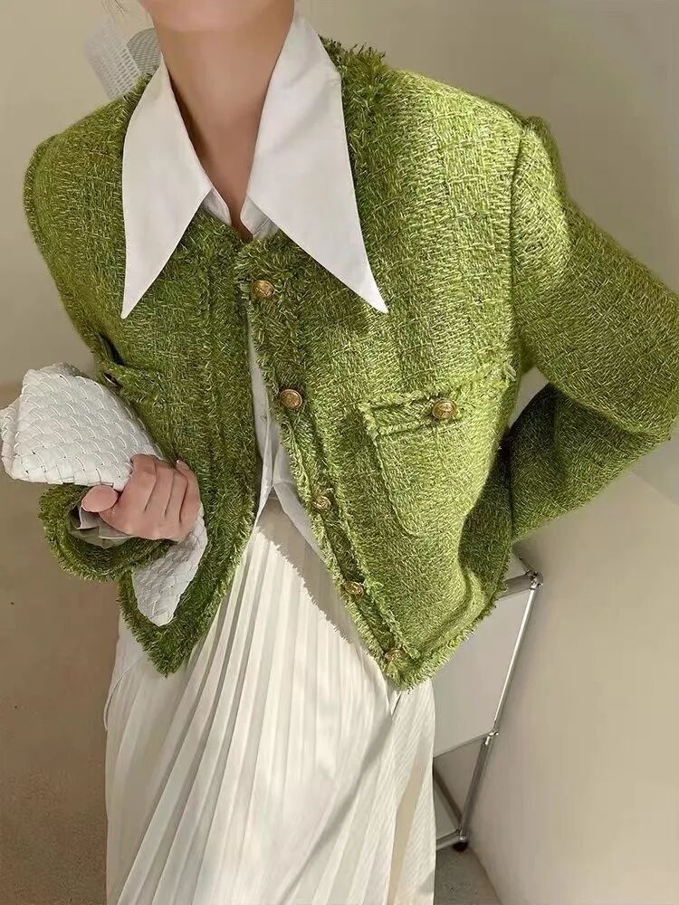 我很爱它的正肩和小圆领,狠狠拿捏那股复古小香的感觉。