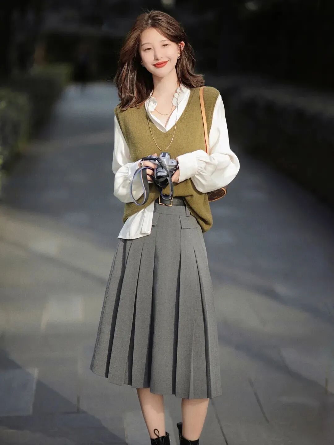 当然,最好能够加入一些类似珍珠或者山茶花的配饰元素来点睛,让一套整体的风格感成为一个体系。