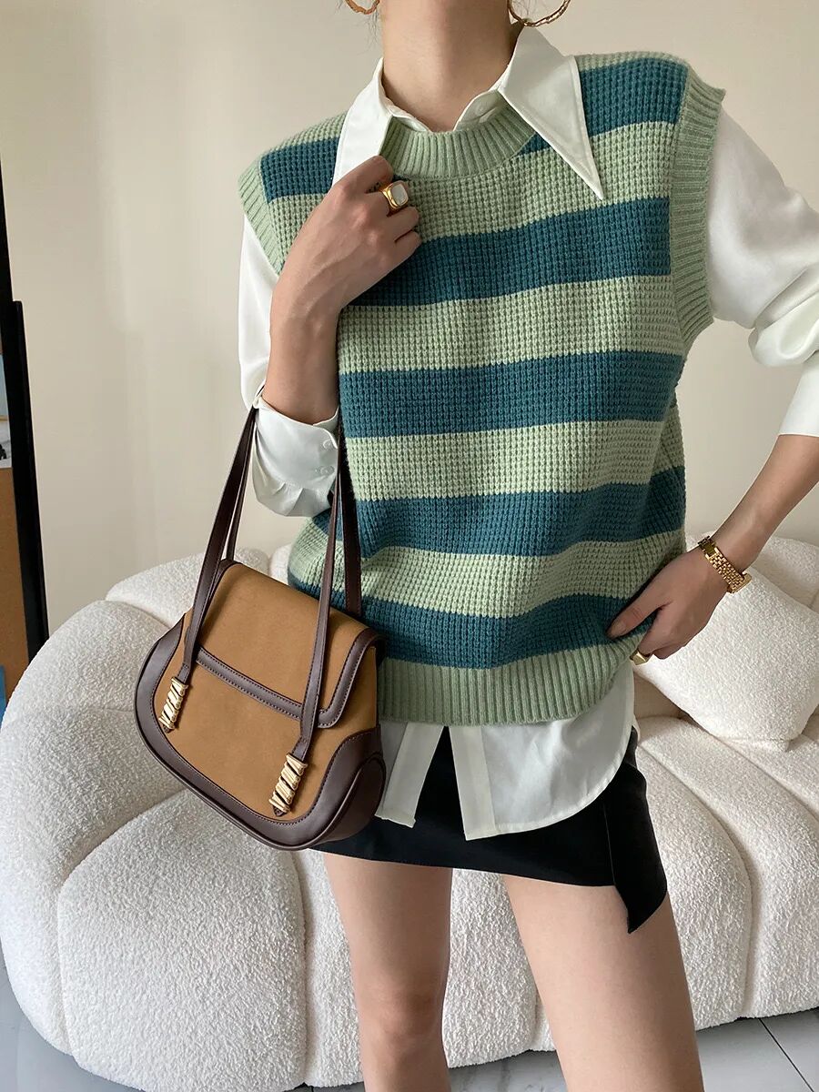 穿大衣,或者搭牛仔裤、休闲裤都ok,不挑风格,可以说是叠穿中很好用的款式,建议大家都可以来入一件这样的基本款。