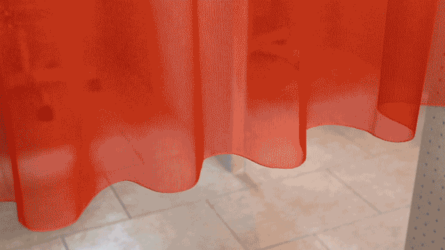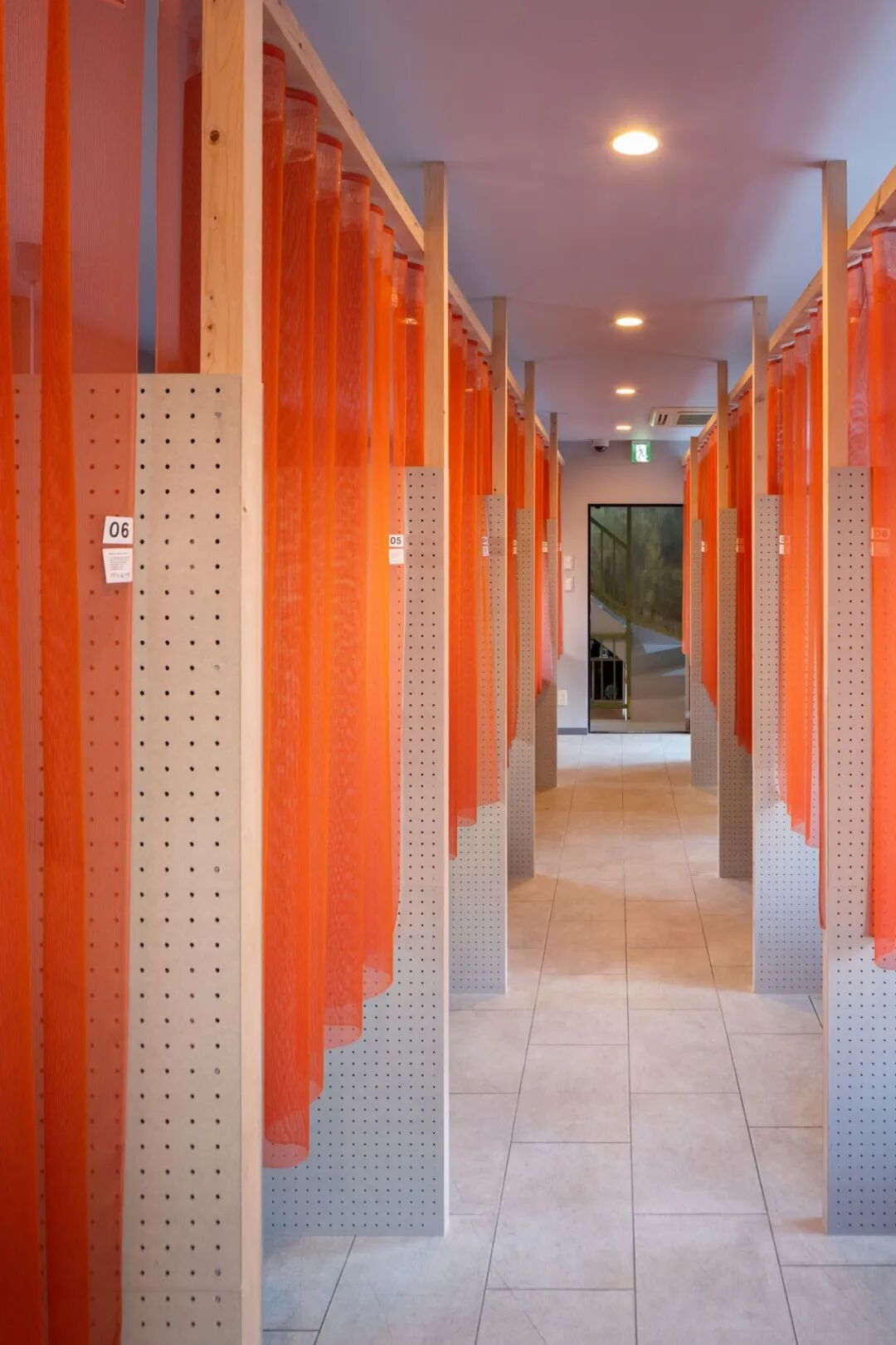 红色的纱帘很有视觉冲击感,保护了私密性的同时,也让整个“格子”空间不那么沉闷。