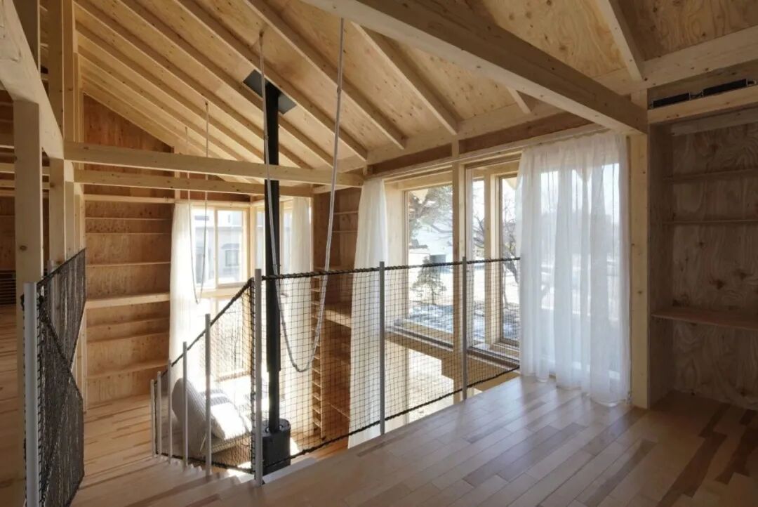进入内部,建筑几乎是木制的空间,减少化学和其他人工材料的使用。