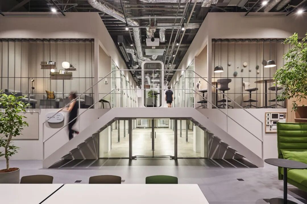 还搭建了楼梯,将办公空间分隔成上下两层。