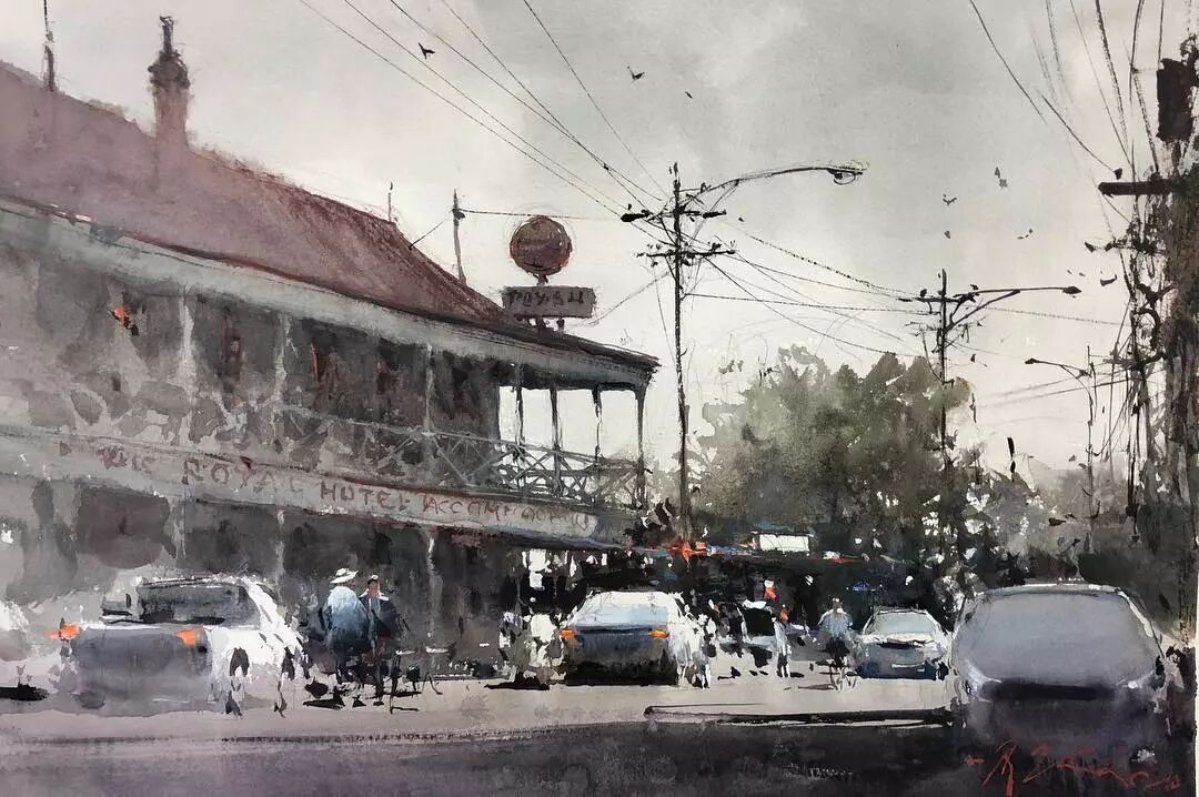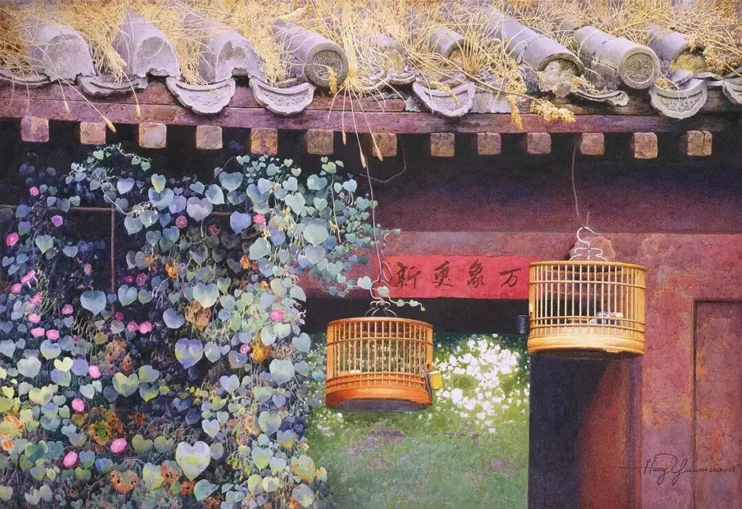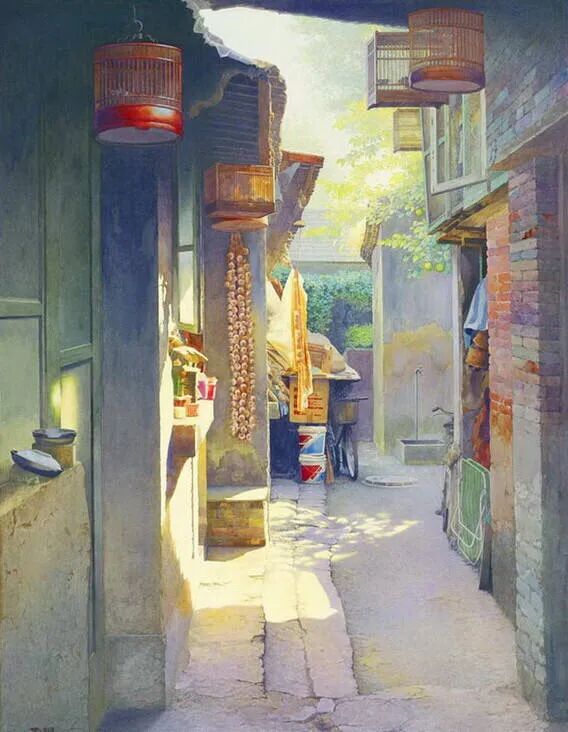 他爱画北京胡同、山花野草、溪谷泉流等题