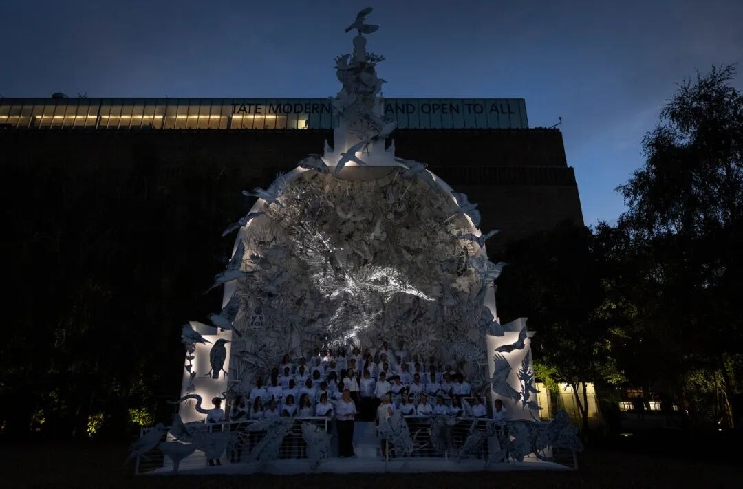 Ida & Billy Architects工作室为庆祝2022年中秋节,用球形编织的灯笼照亮了维多利亚公园的一个足球场,诠释了古老的民间祭月故事。作品装置是一个3D戏剧空间,由三个点燃的三角形大地球组成,其缩进的形状是跳跳兔和圆月的标志性人物。焊接结构的三角球将月亮、兔子和山丘与纹理和阴影联系在一起,引发了自古以来人类的好奇心、想象力和探索。