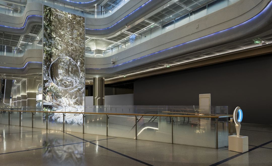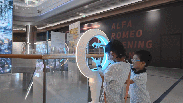 回寰HUIHUAN 的一个互动影像作品。体验者可以通过将手放进圆环装置进行互动,打破现实与虚拟的时空界限,随机召唤出不同的神奇动物,带您进入平行世界。
