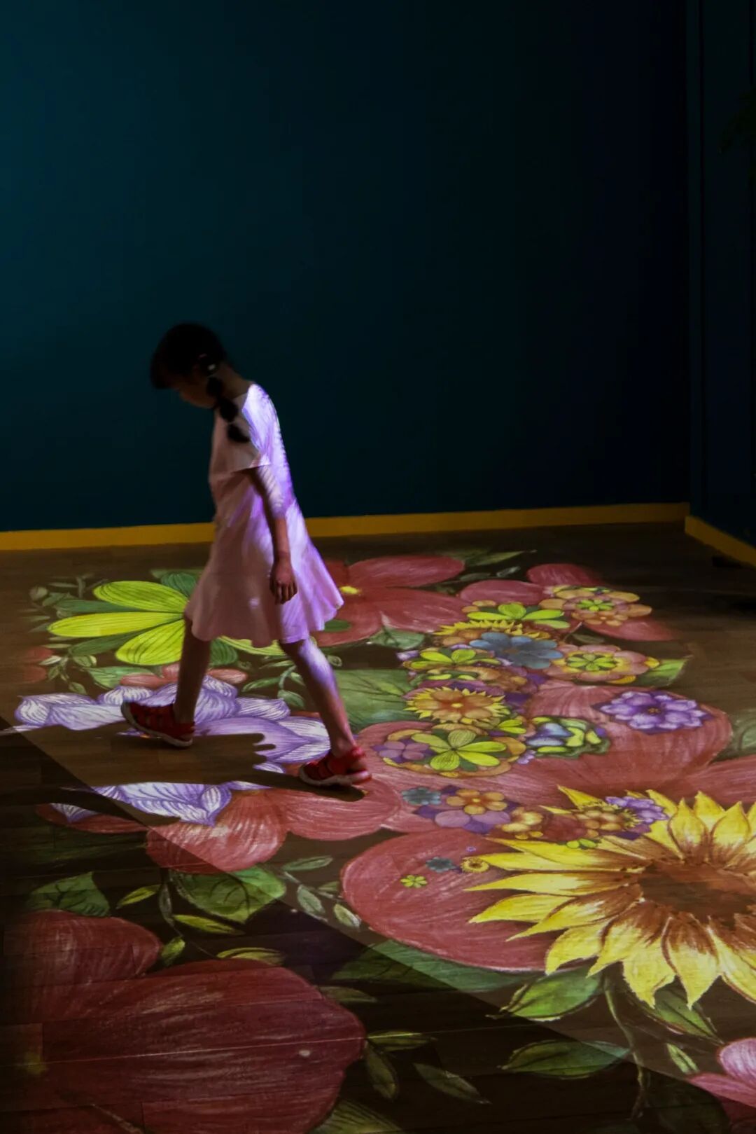 冏艺以不框限孩子创意为美育教学的主要宗旨,顺应科技时代的发展,希望孩子们的创作能有多元展示的可能性。因此异艳与冏艺合作,制定 4 个 主题与视觉风格,冏艺负责创作不同主题的视觉素材,而异艳则相应规划、整合出地面与墙面互动投影两种新媒体展示,让作品动起来!