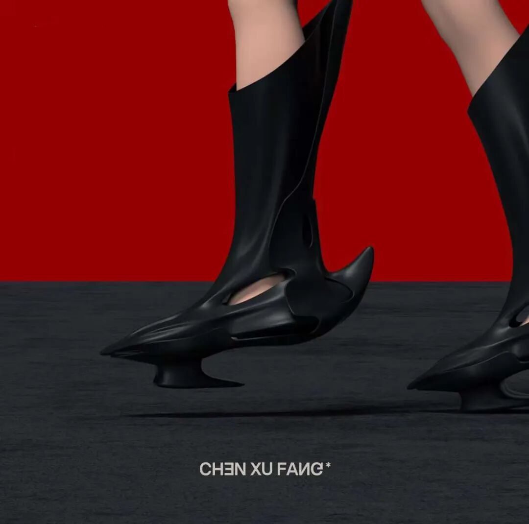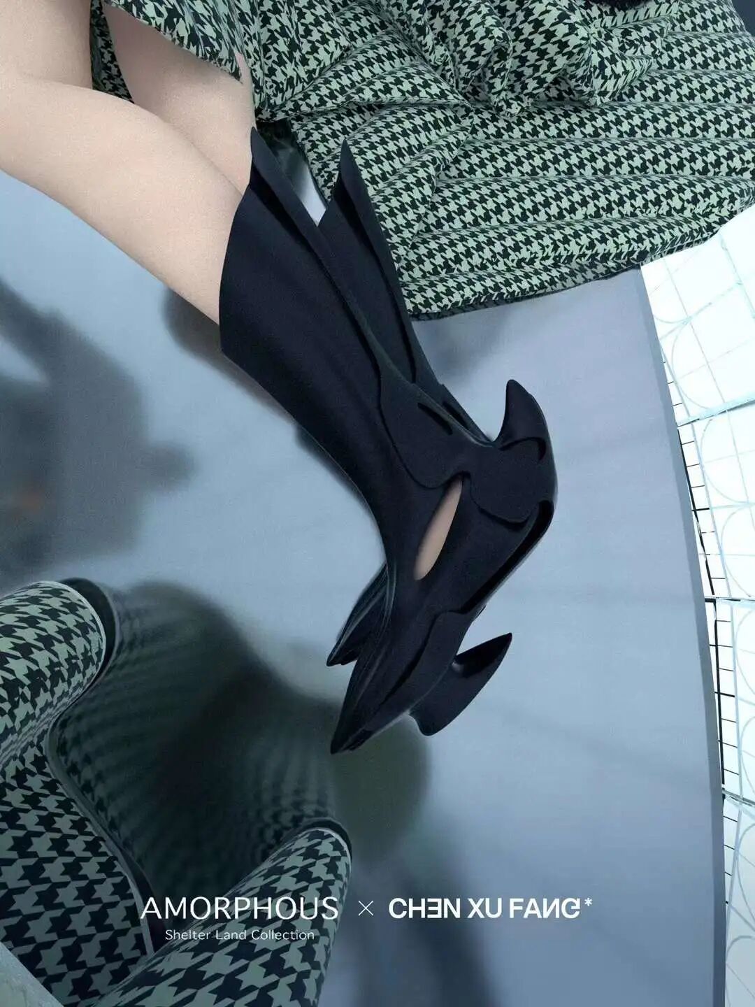 这是和Amorphous Studio合作的一套虚拟服饰,在开始聊的时候一拍即合就决定了合作这个系列。这一套系列是以艺术家Oskar Schlemmer服装内外空间概念作为基调,结合运动中的服装与人的关系展开的。而我主要负责就是关于鞋子部分的设计工作,一共是根据服装的特点设计了3双鞋。
