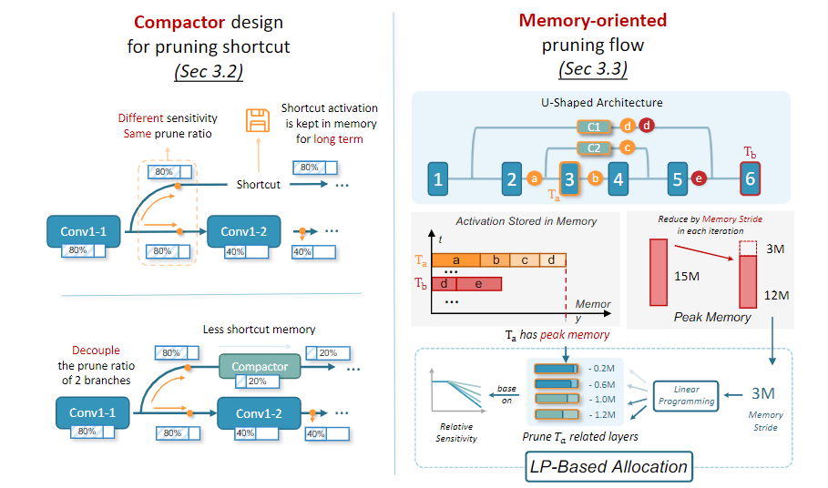 基于深度学习的图像复原(Image Restoration)模型的硬件资源开销非常庞大,限制了它们在移动端等实际场景中的应用。为了改善深度图像复原模型的峰值内存开销,作者提出了一种专注于内存优化的结构化剪枝(MOSP)方法。为了压缩长距离跳跃连接(图像复原模型内存开销的一大来源),作者在跳跃连接上引入压缩器(Compactor)模块,以解耦跳跃连接和主分支的剪枝过程。MOSP方法采用一种迭代剪枝的范式,逐步优化模型各层的内存开销。与基线剪枝方法相比,MOSP方法可在不显著影响剪枝模型任务性能的同时优化其内存开销。