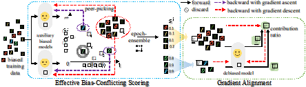 3.《利用偏好冲突评分和梯度对齐对抗未知偏好》(Combating Unknown Bias with Effective Bias-Conflicting Scoring and Gradient Alignment),作者:计算机科学与技术专业2021级博士生赵博文(导师:夏树涛教授)