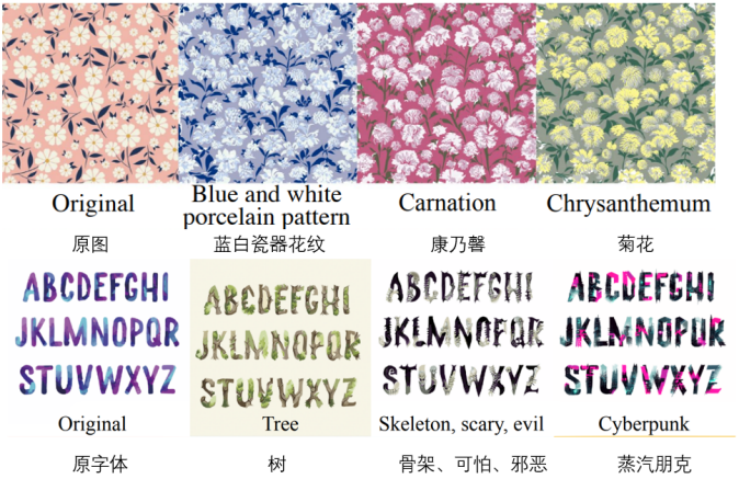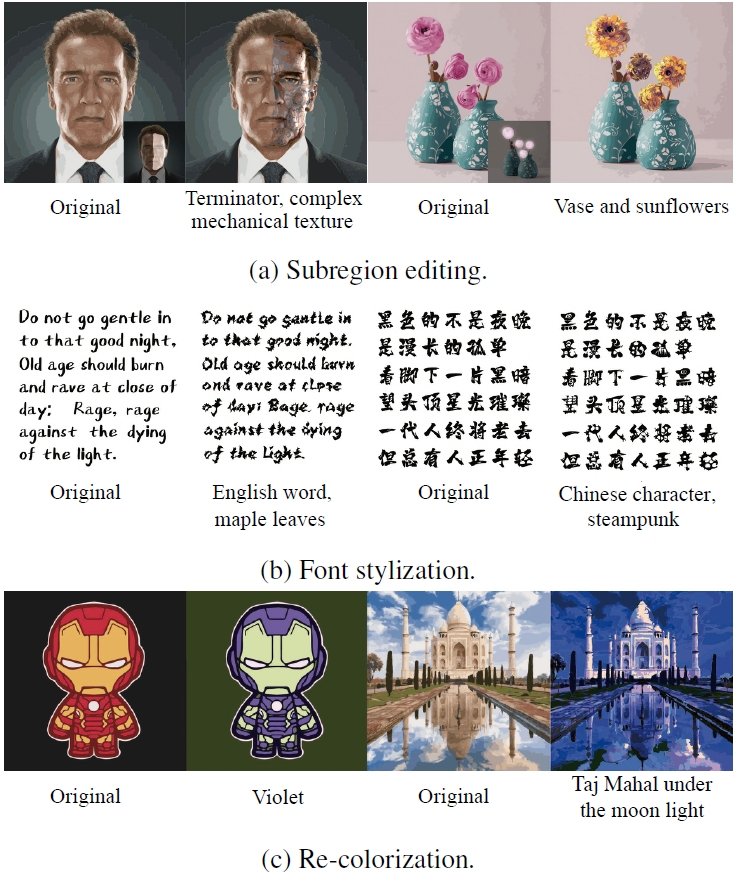 (自上而下:子区域编辑、字体风格化、图像改色)