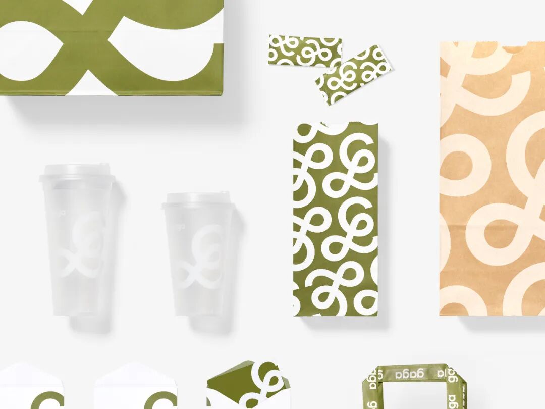 The logo of gaga is composed of two parts: the symbol and the logotype. The symbol is the most significant element of gaga's visual identity, taken from the handwriting of the Latin letter g, which is romantic, sprawling and modern. The story of this handwriting goes back to the founding of gaga, when the founder's daughter wrote her name, gaga, and we have kept the meaning of this beautiful story and redrawn it with a modern twist to give it a new, gentle and dignified character. The symbol can be scaled up, down, tiled or cropped to create different scenes and feels, and we can also make text wrapping and overlays on it for gaga sub-brands, including gaga garden, gaga chef and gaga tea bar.