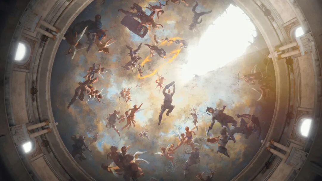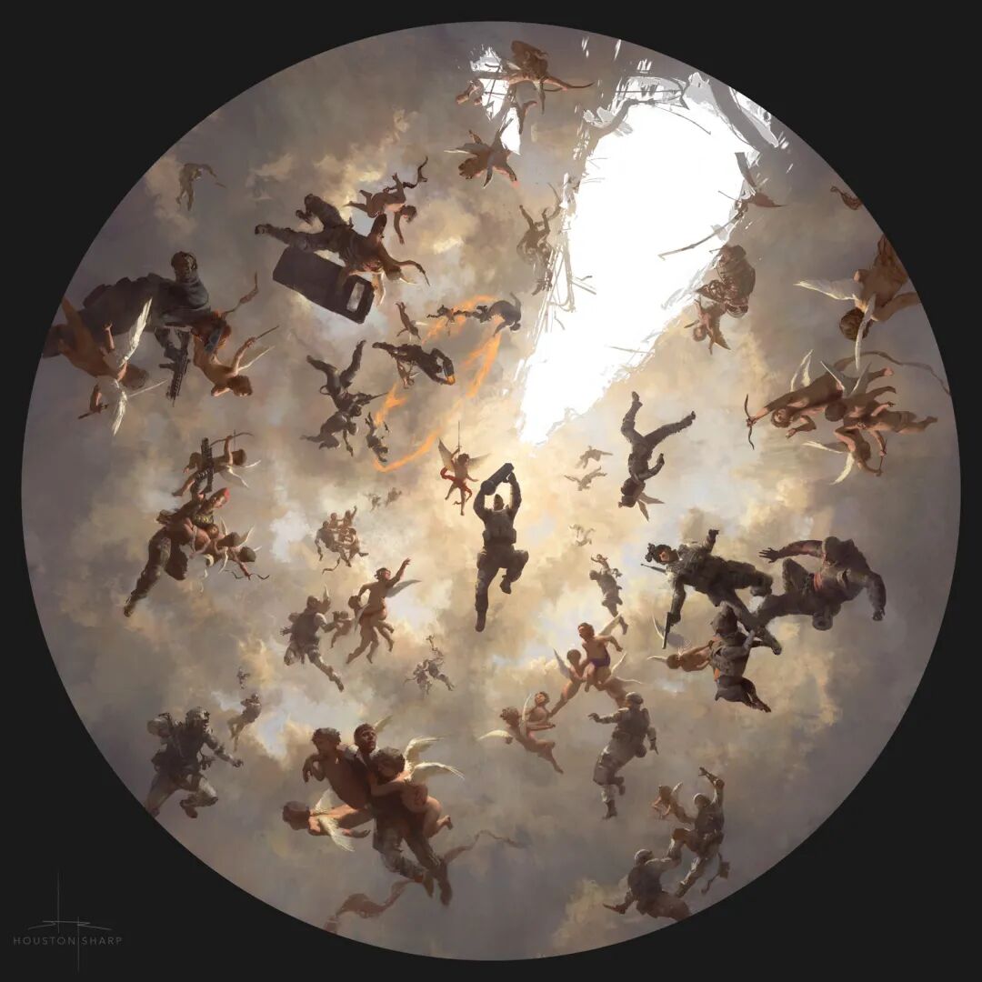 为游戏《使命召唤:黑色行动4》活动制作的天花板壁画,壁画包含游戏中的所有专业角色。