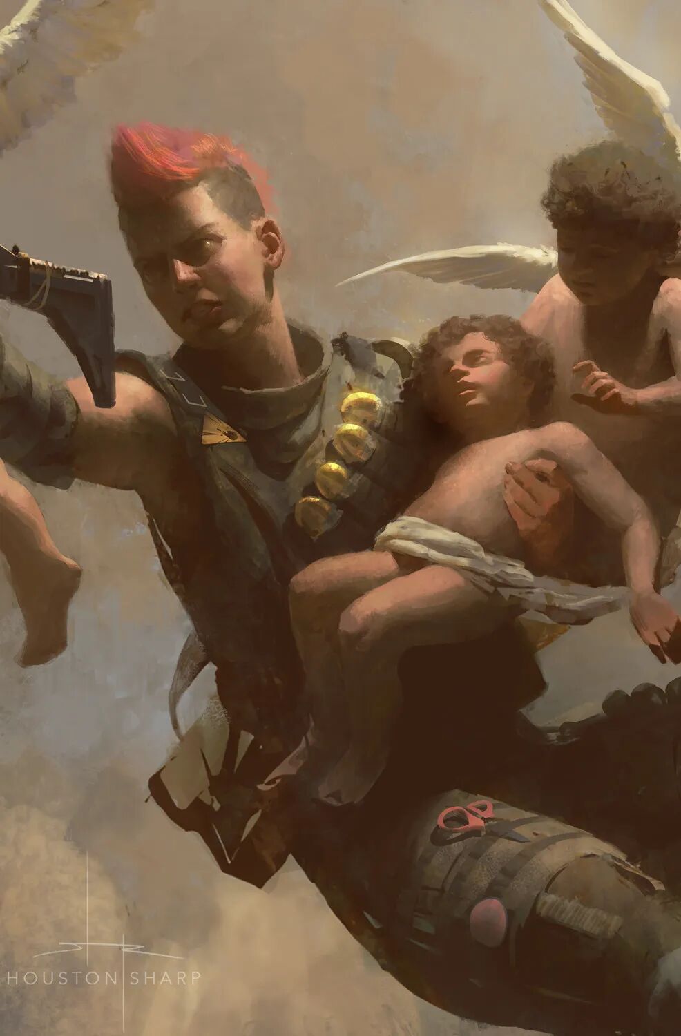 Houston Sharp出生于1992年,他从小喜欢画画和涂鸦,高中发现数字艺术领域并决定以此为职业,之后便进入艺术中心设计学院学习插画/娱乐设计,毕业后的第一份工作就是为电影《神奇女侠》进行艺术创作。