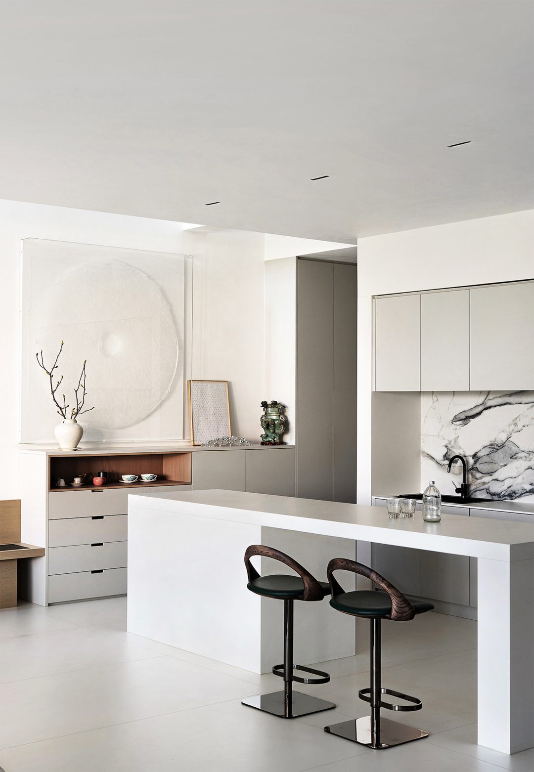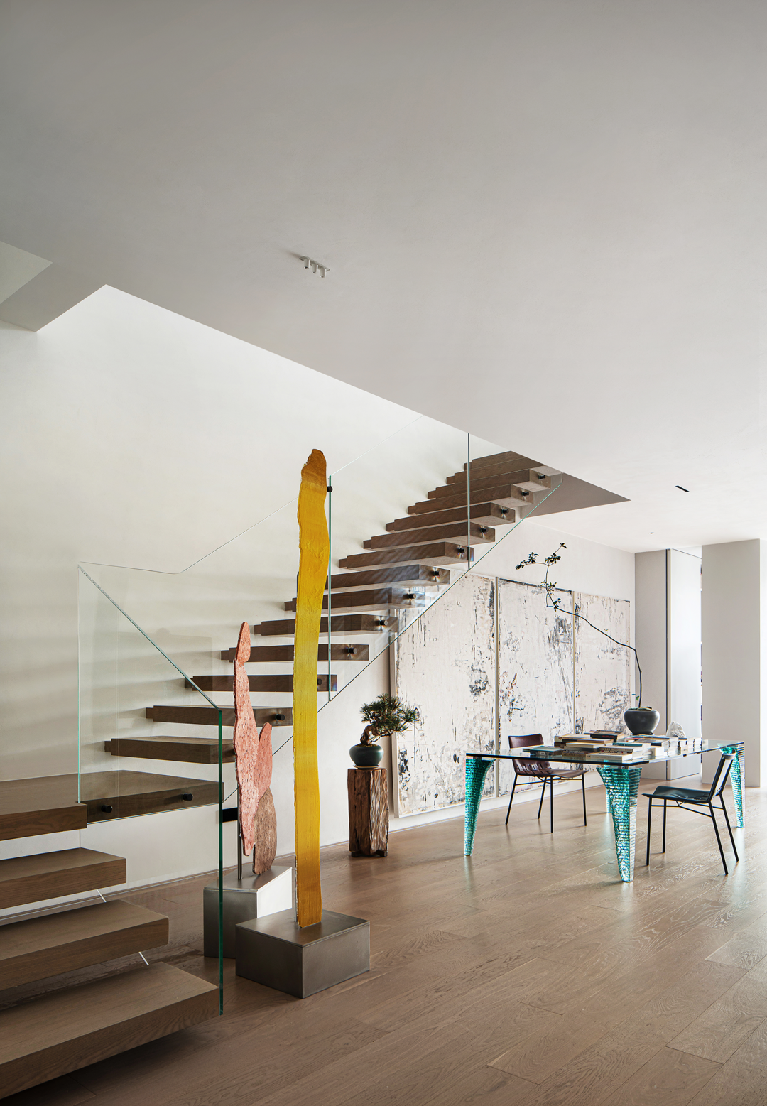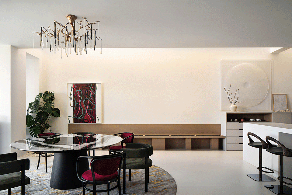 “本案业主是一位优雅的成功女性,她极具艺术审美的天赋、深谙生活的品位所在,对当代艺术品的收藏构成了她丰盛的人生底色。设计伊始,她表达了为家人与自己打造一处艺术化的生活栖息地的愿望,让生活的主场,时刻有艺术在场,常常有文化共鸣的回响。”设计师分享道。