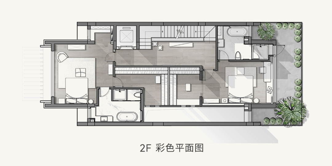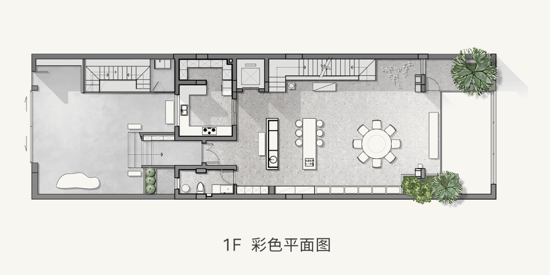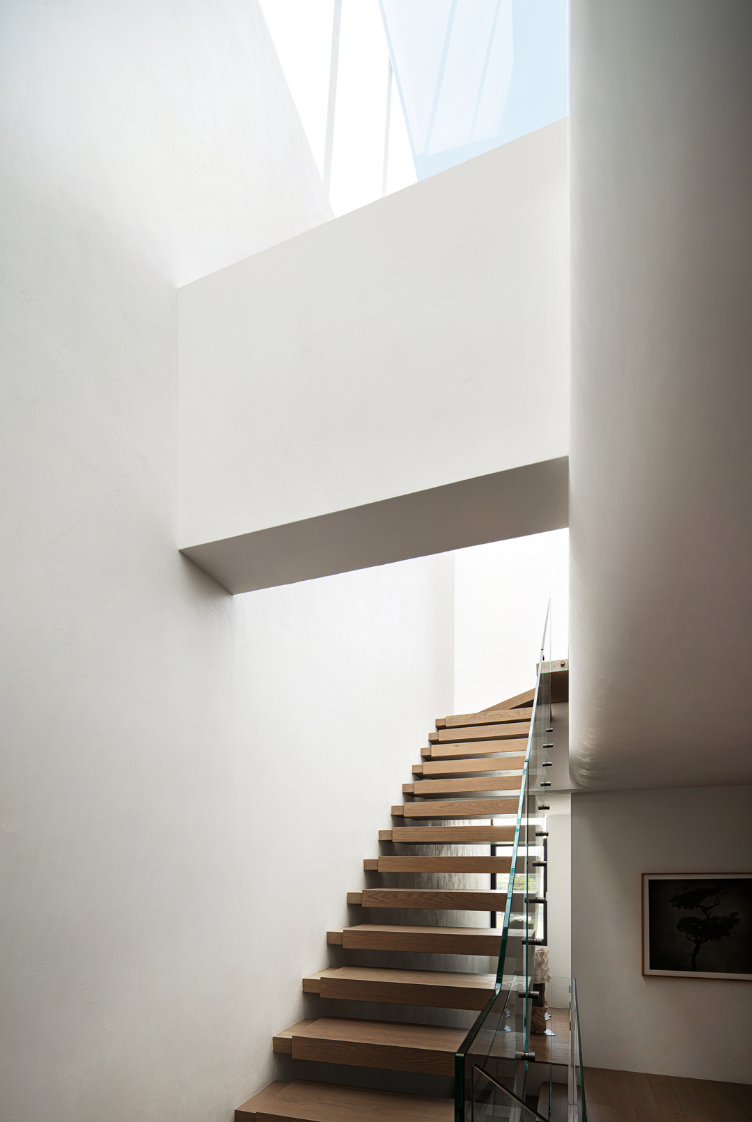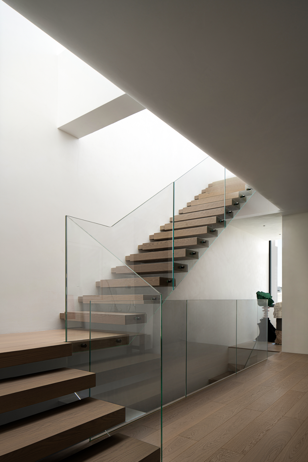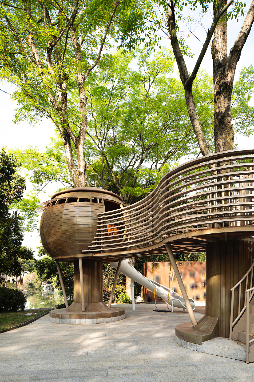 当倚湖而居、低密修心成为本案的鲜明标签时,设计师亟待解决的是更现实的改造难点 —— 深圳气候潮湿,本案又位于临水岸处,要将原本四层的别墅改造为六层,如何解决空间狭长且只在建筑两侧有光线与透气的问题?如何改变原建筑动线单一而缺乏趣味的状态?如何安放一家人舒适、有品位的现代生活?