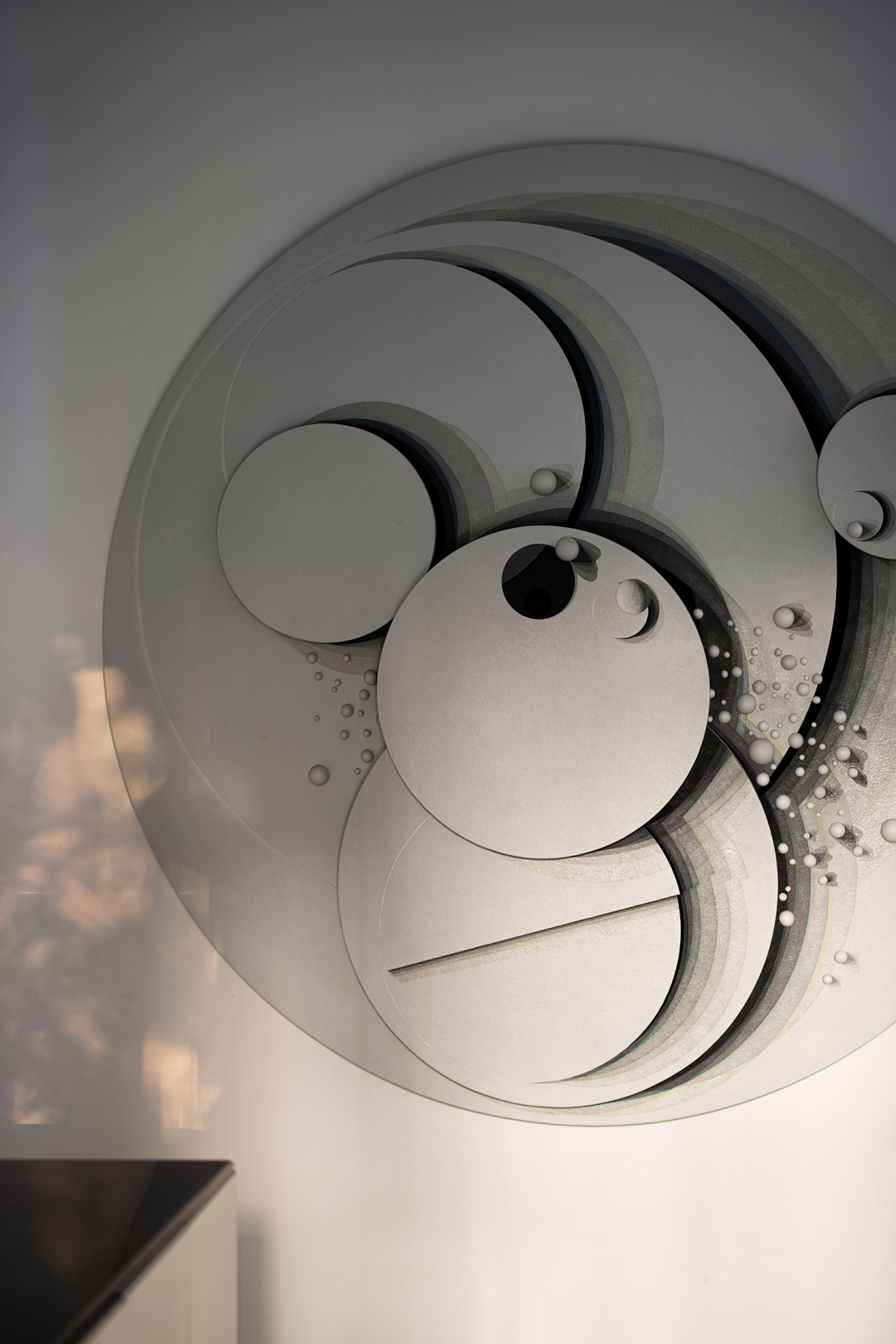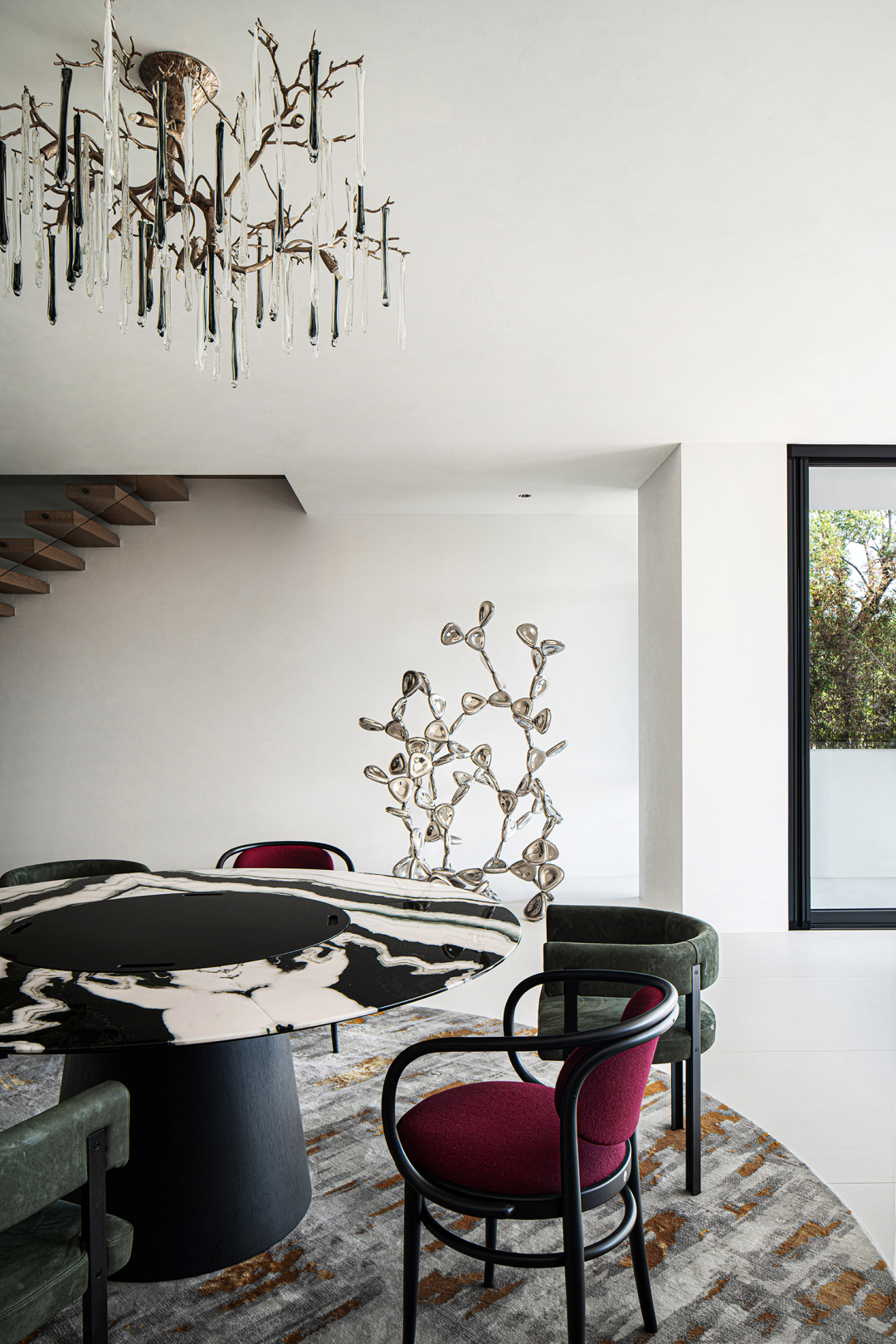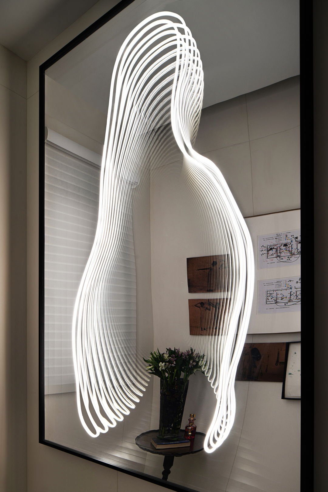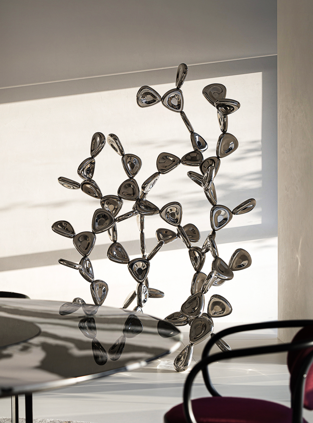 “仙人掌”是意大利艺术家Loris Cecchini的作品,钢制模块和仙人掌的立体结构佐证着“有机”与“自然”的交互,透过这种植物结构的形态和繁复路径,表达植物在复杂进化中与生俱来的美感,创建了宏观与微观之间永恒不变的意味,与空间中家人密切互动的生活氛围相关联。