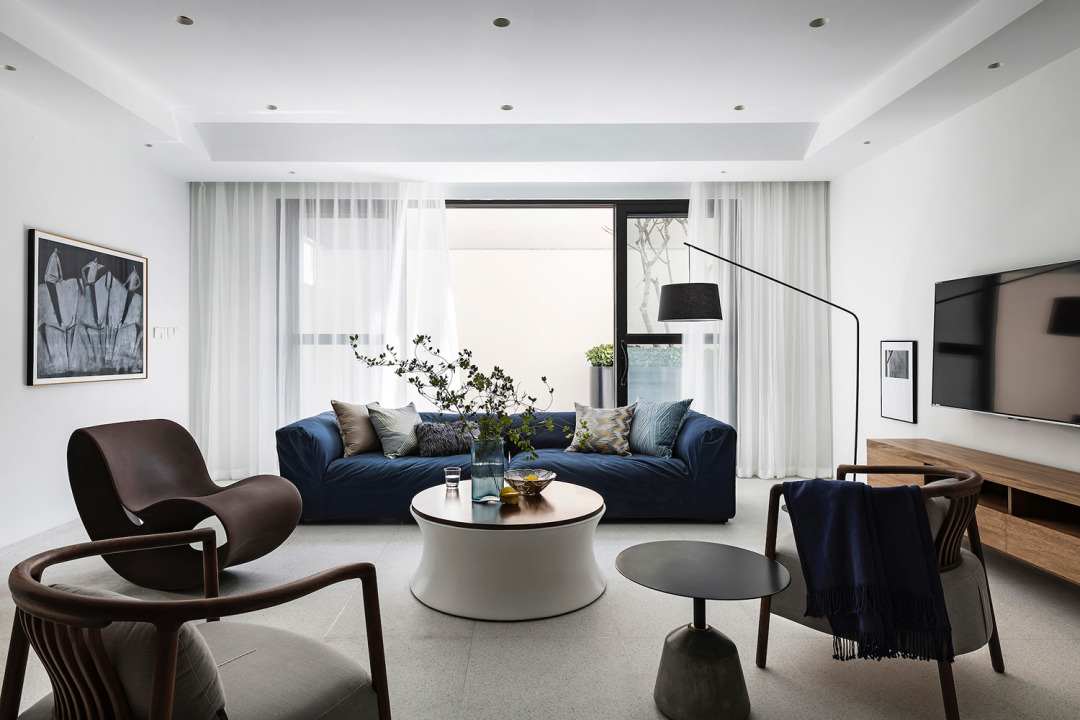 轻减浮于表面的装饰性,当纯白画布与柔和色调交融,空间的棱角与弧度对比鲜明,因至简而臻于自由之美。设计师力求在艺术与自然的缝隙间,寻找繁华都市与归隐闲适的平衡点,投射文化精神的自由度。