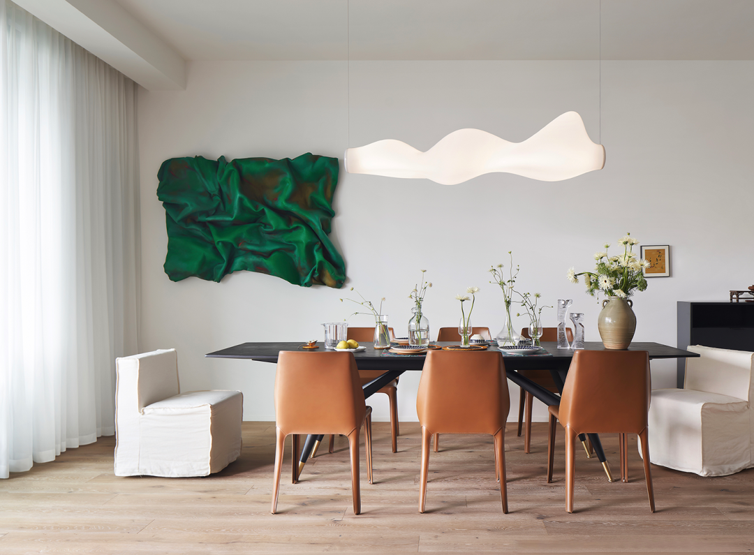 与此同时,摊开家庭关系、情感互动、物件故事、生活方式交织的场景内核,设计师让艺术的自由、文化的诗性,照进生活的日常,让细腻的审美交响回应人们的生活主场与内心角落。最终,文化雅意臻至浓时,艺术收藏沁入美好家宅,优雅归心。
