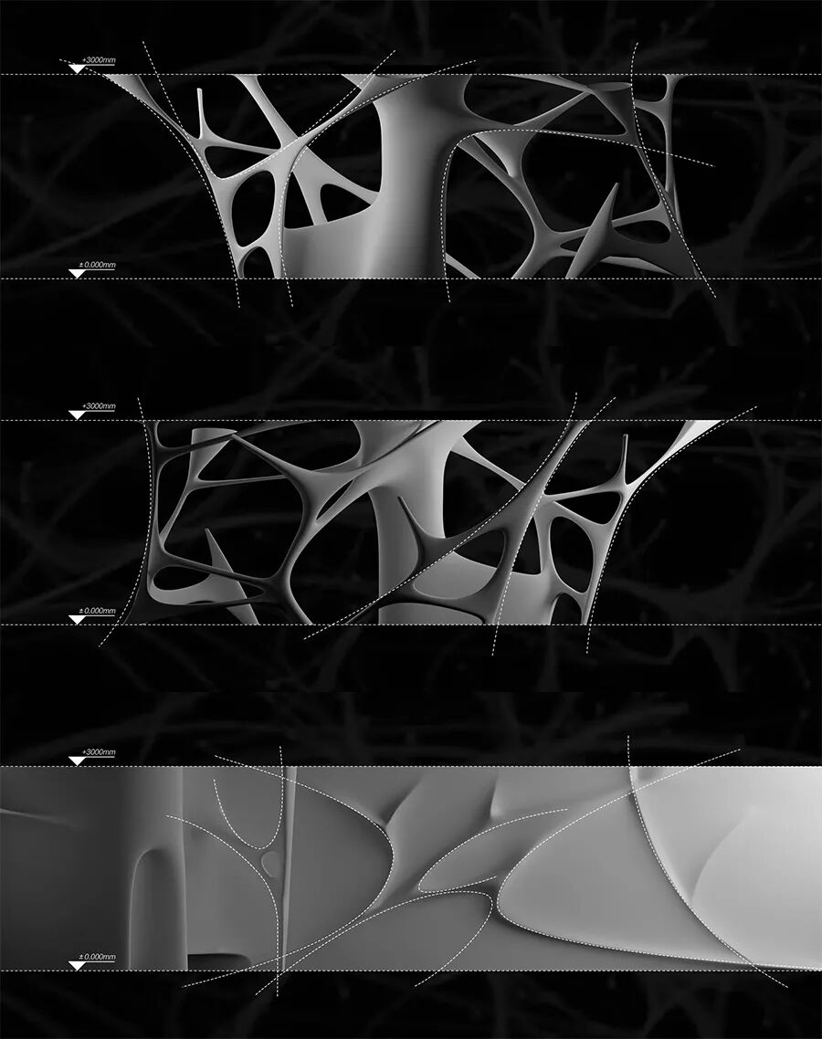 虽然设计过程充满自信,但是从未触碰的新领域也让我们产生压力,我们信任自己,这样的可能性能突破这个看不到自我,用我们的纯粹性与纯粹的设计手法贯穿一个复杂的设计元素(个体)。在现实的空间场域中,指向一种非物质性,消失的真实性。