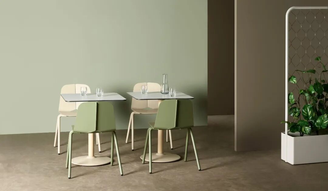简约的餐椅有多种颜色可供选择,背部的设计简约又舒适,同时可以叠加摆放,不用时还能节省空间。同系列的高脚凳也是十分百搭,低调典雅的设计适用于任何场所。