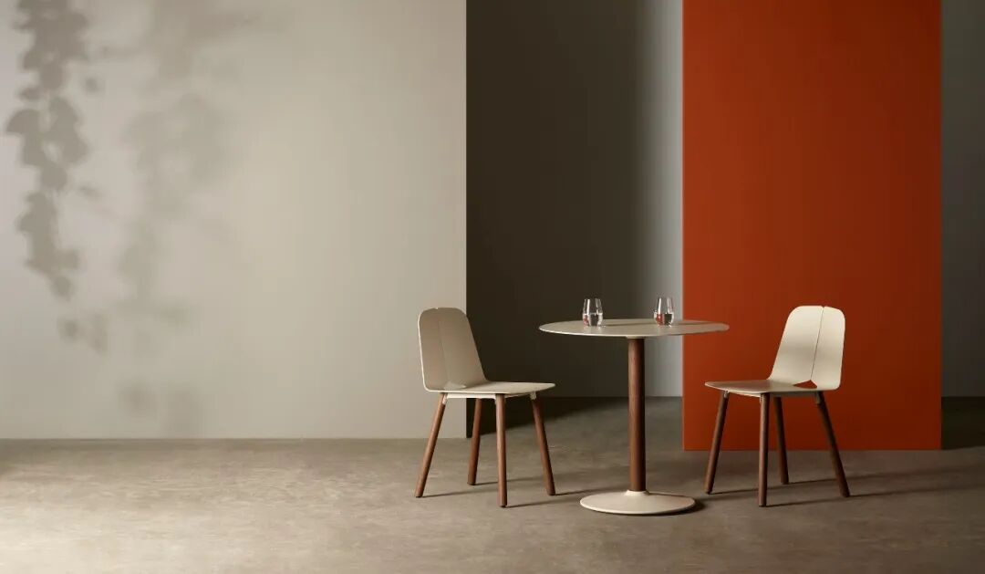 同样简约的餐椅和餐桌的组合,桌子可以弯折起来摆放,对于现在都市内比较紧凑的空间非常实用。