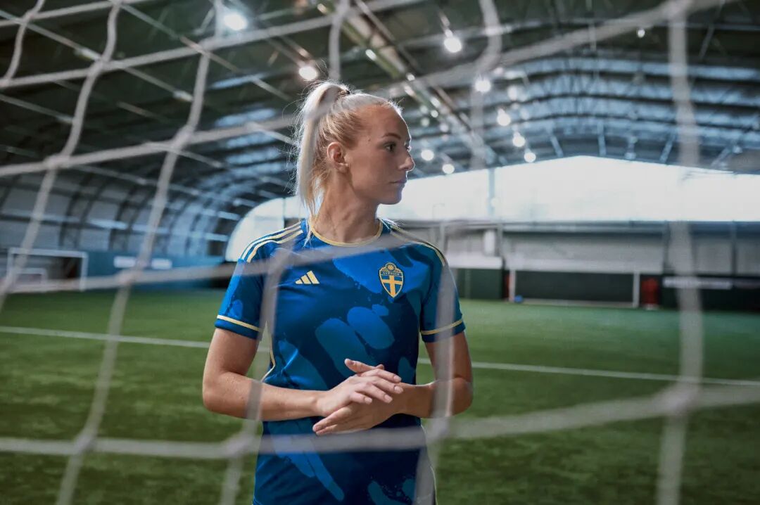 瑞典客场球衣的灵感来自北欧广阔的冰川河流和冰盖。将不断变化的冰川蓝色图形与瑞典国旗上的黄色相结合,旨在强调瑞典独特的冰河美景。