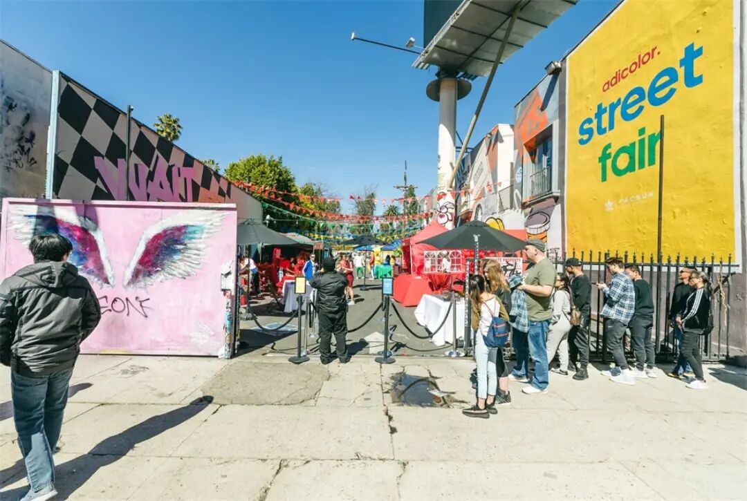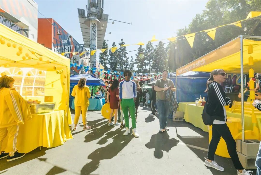 为了帮助阿迪达斯与零售商PacSun在洛杉矶重新发布标志性的‘Adicolor’系列产品,在市中心的街头策划了“Adicolor彩色街头集市”活动。Adicolor是他们最具标志性的色块时尚原创系列之一,要求设计一个互动的环境,让洛杉矶的社交媒体影响者和公众沉浸在一个色彩的世界中。