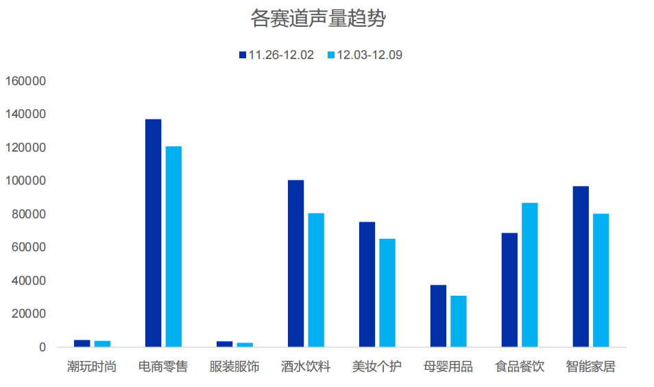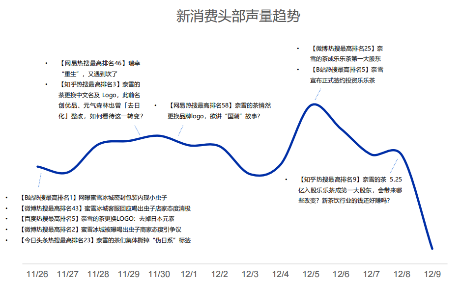 本周新消费各赛道声量有所下降,其中食品餐饮领域有所上升。电商零售领域依然突出,热点动态主要集中于奈雪的茶等品牌。
