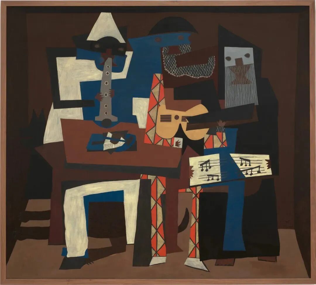 ▲《三个音乐家》,1921,图片来源:2022 Estate of Pablo Picasso/Artists Rights Society (ARS)