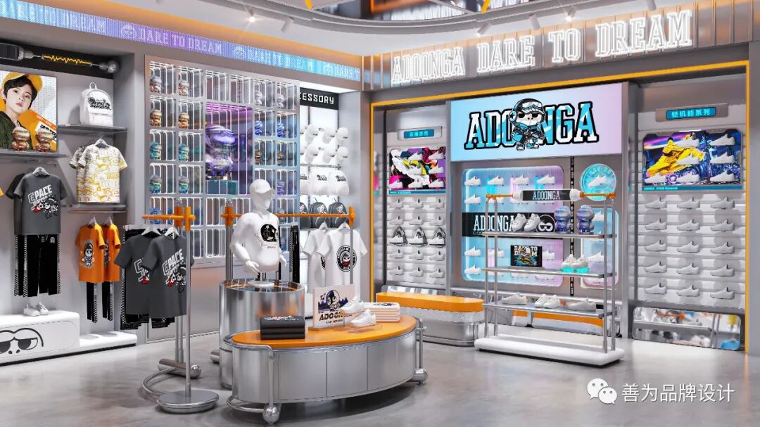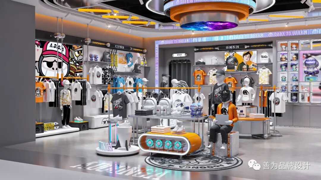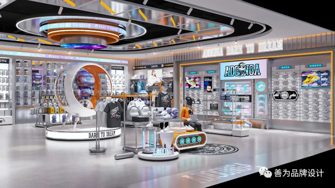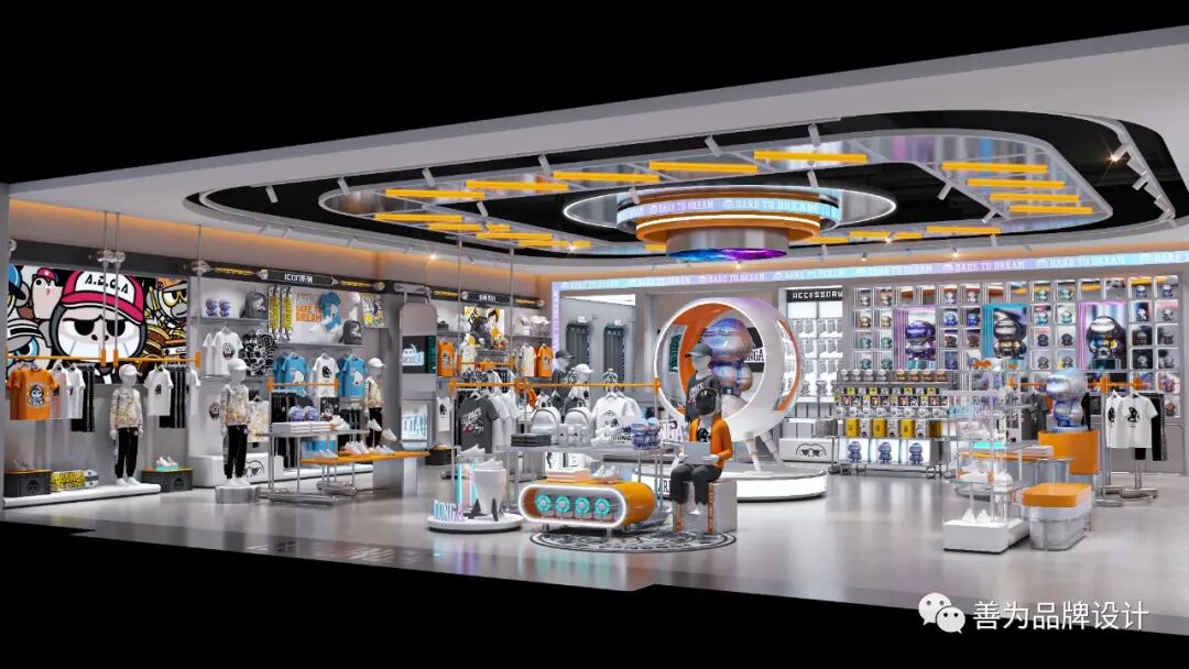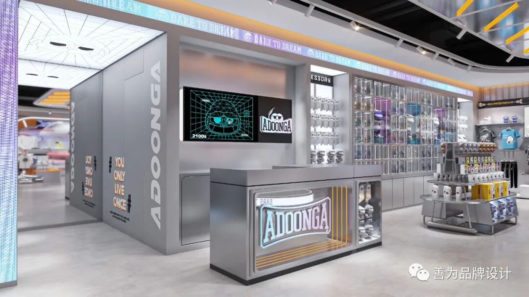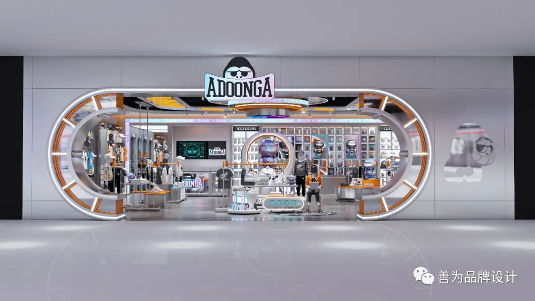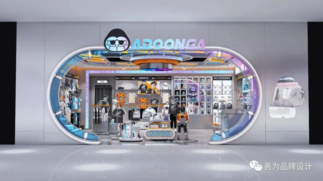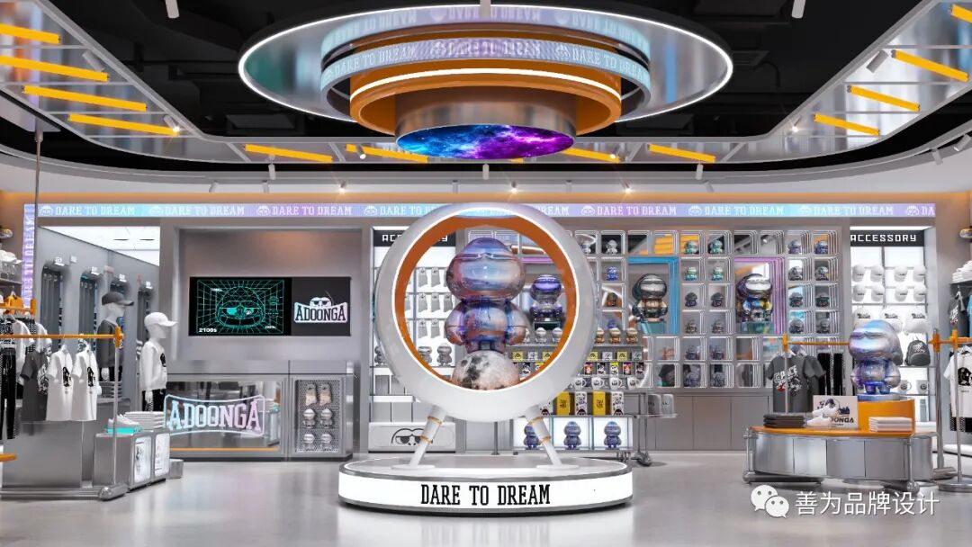 善为将航舰星际穿越中的神秘感和科幻感解构到空间场景中,并且,根据受众需求与Adoonga共同规划整个体验场景,将原本单一的鞋服饰品类延伸为与潮玩、交互式立体装置体验叠加的复合业态。