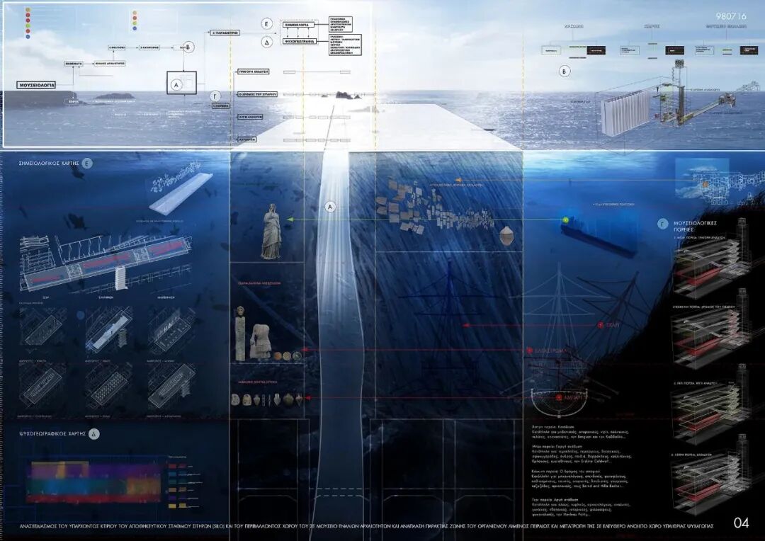 由Piraeus Museum举办的水下文物馆的竞赛中,由Charry C. Bougadellis & Associate Architects + Georges Batzios Architects设计的方案获得了荣誉奖。