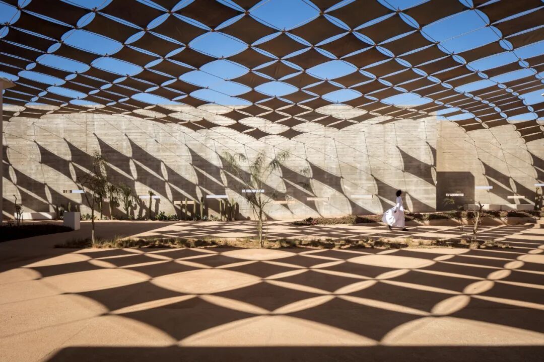 This space becomes the backbone of the campus, connecting the research units which are articulated along a covered walkway thanks to a canopy of steel cables and Sahrawi-coloured sunshade canvas, thus offering solar control. living space outside the buildings and a functional architectural style rooted in local roots.